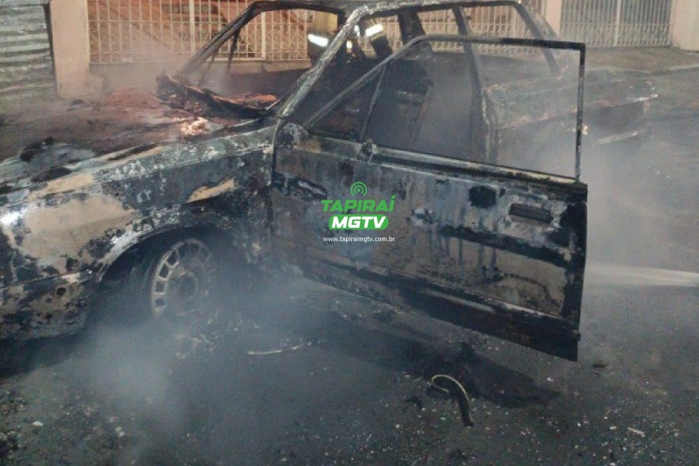 Moradores preocupados com a situação conseguiram empurrar o automóvel para o meio da rua, evitando que o incêndio se propagasse para um carro que estava estacionado logo atrás.