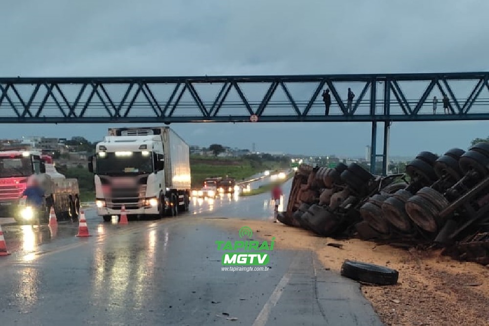 Após o impacto, a carga de milho ficou espalhada às margens da rodovia. O trânsito ficou interrompido por cerca de 40 minutos e, em seguida, foi liberado em sistema de revezamento em uma das pistas.