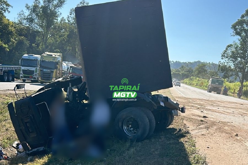 Segundo informações, o acidente começou com o tombamento de um caminhão, seguido de uma colisão traseira que envolveu um automóvel, uma carreta e outro caminhão.