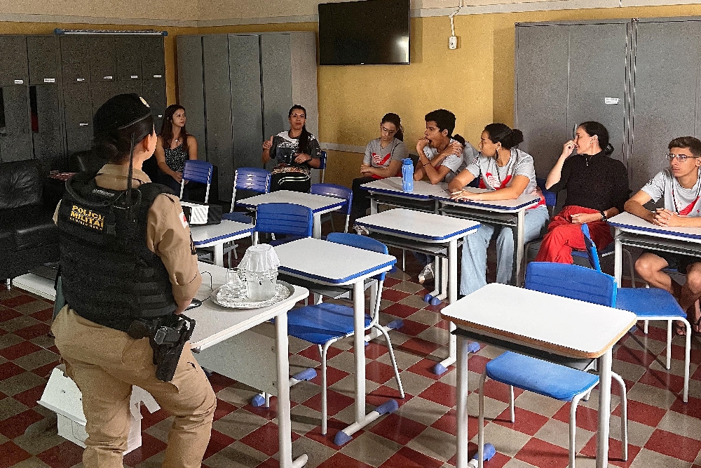 De acordo com a PM, a reunião teve como objetivo conscientizar os alunos sobre Bullying e Drogas.