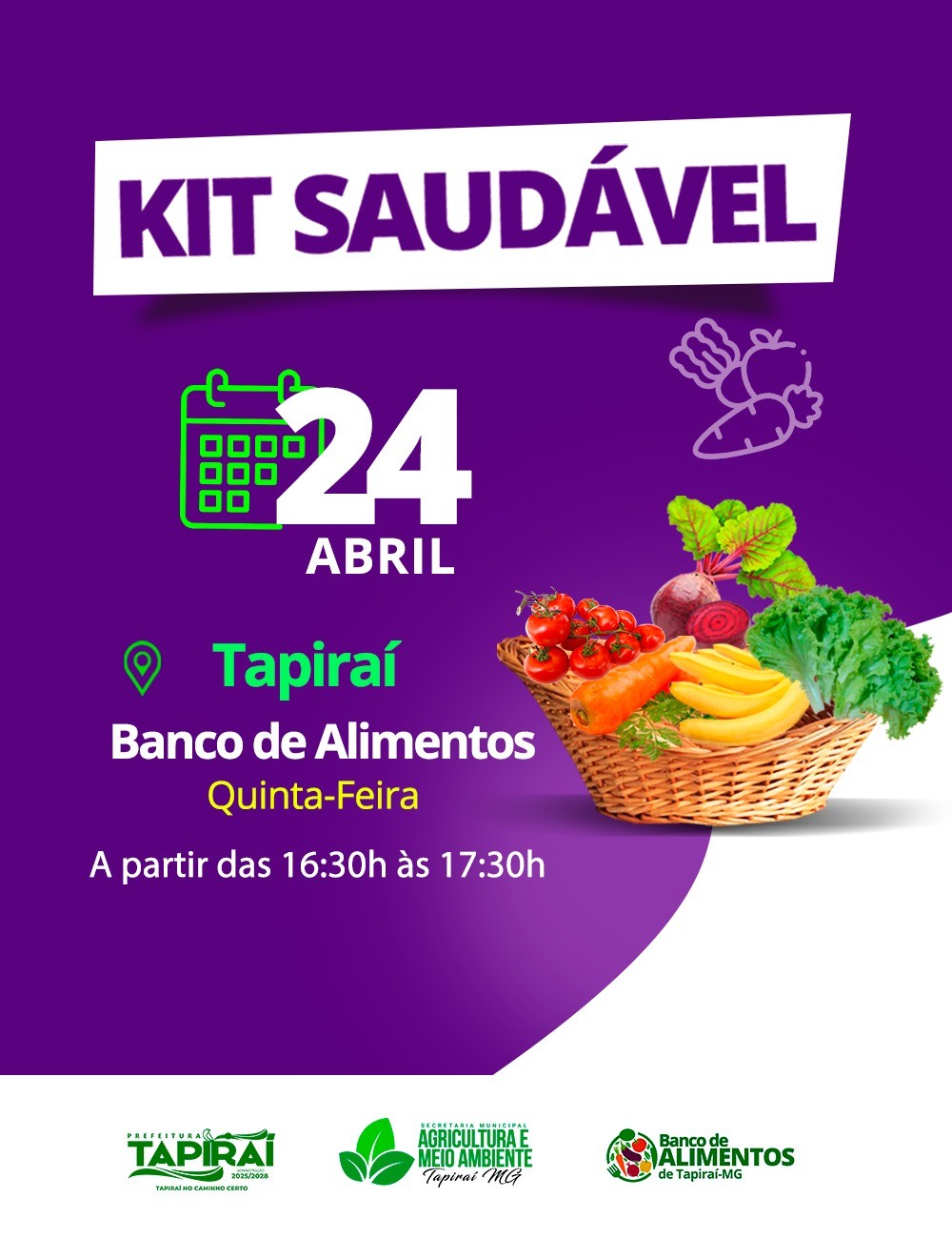 Em A Prefeitura de Tapiraí, através do Banco de Alimentos, vai realizar mais uma distribuição de kit de verduras nesta quinta-feira (24/04).