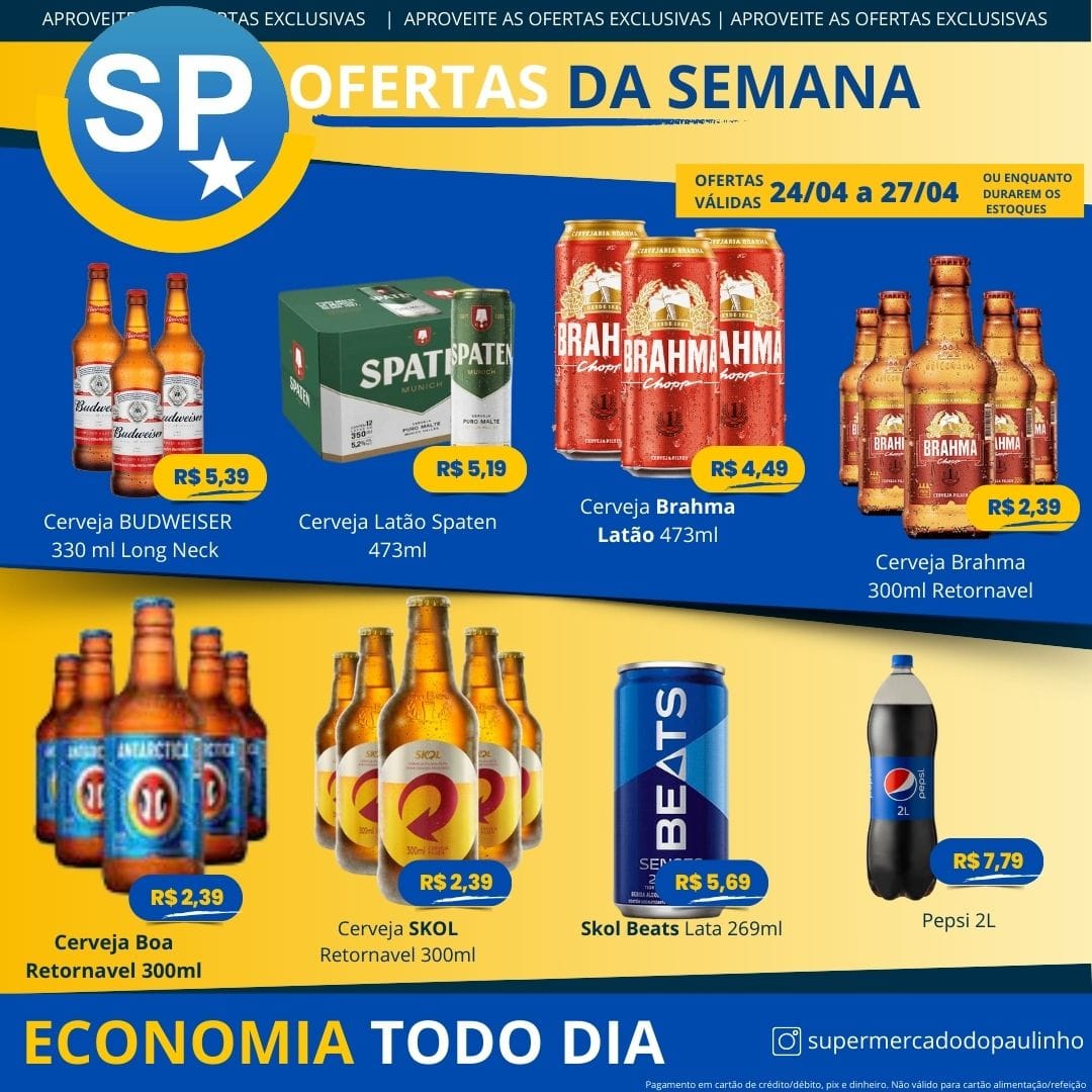 Ofertas válidas para pagamento em pix, dinheiro, cartão de crédito e debito, de 24/04 a 27/04, ou enquanto durarem os estoques.