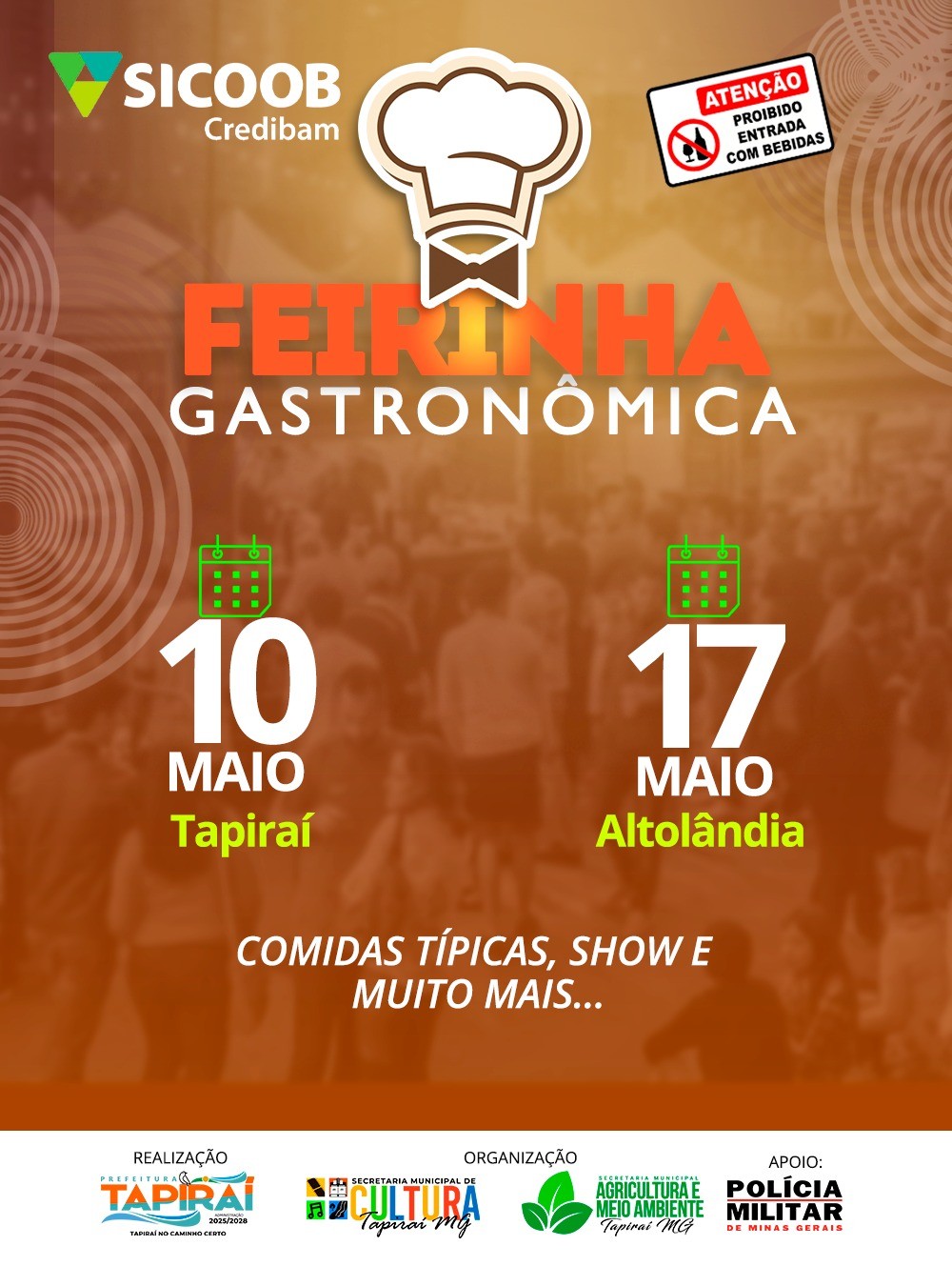 No próximo sábado, 10 de maio, ocorrerá a Feirinha Gastronômica de Tapiraí. Já no sábado seguinte, 17 de maiol, o evento será em Altolândia.