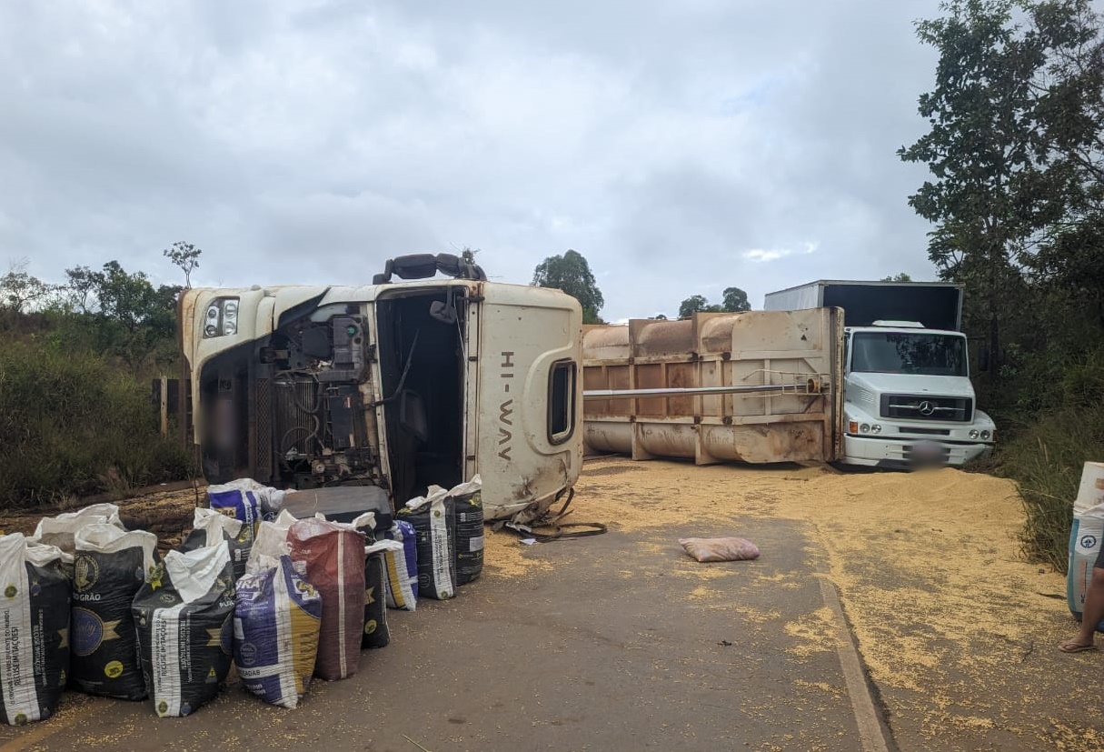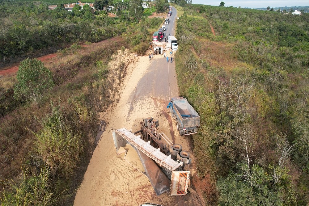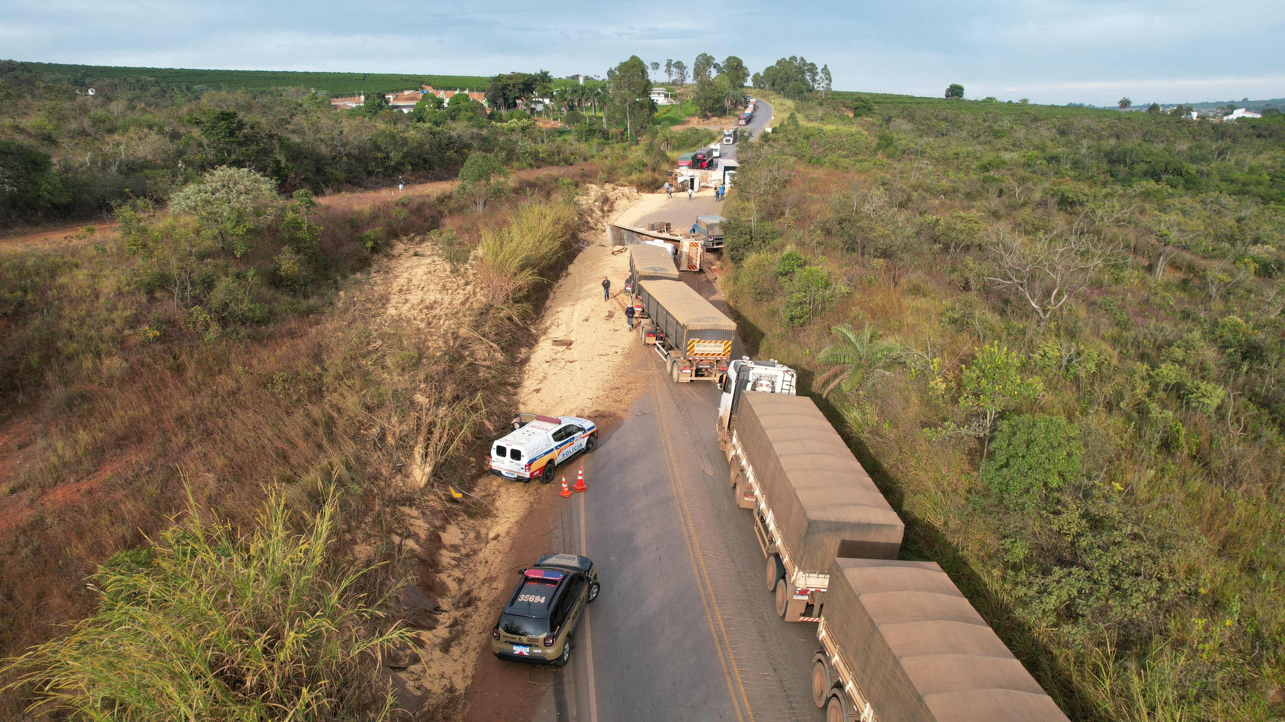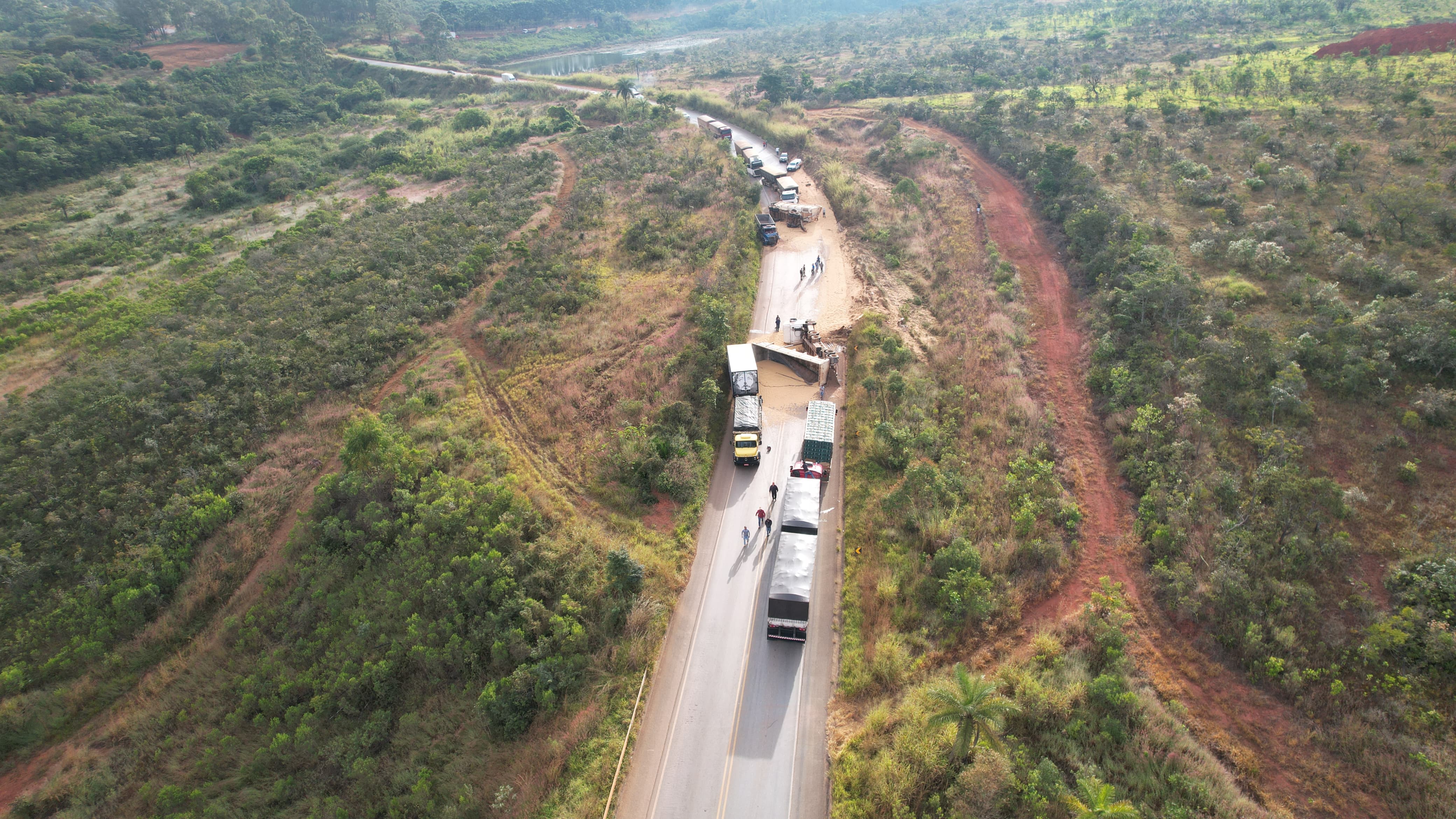 De acordo com a Polícia Militar Rodoviária (PMRv), o acidente começou quando uma carreta bitrem, que seguia no sentido BR-262/São Gotardo, tombou e os semirreboques pararam sobre a pista.