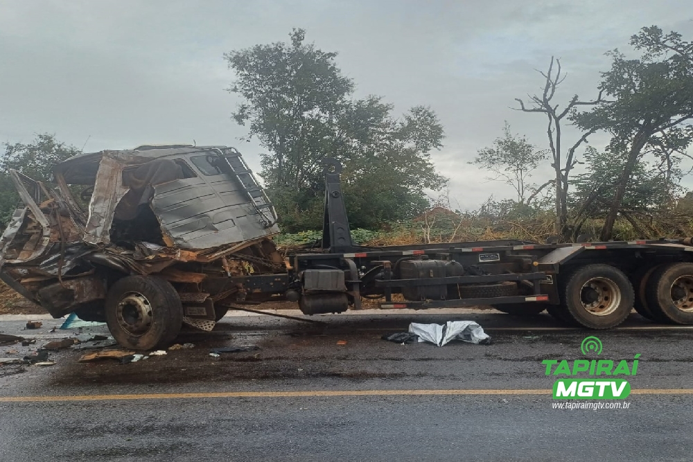 De acordo com a PMRv, o acidente envolveu um caminhão M. Benz/Atron e uma combinação veicular M.Benz Axor tracionando dois semirreboques.