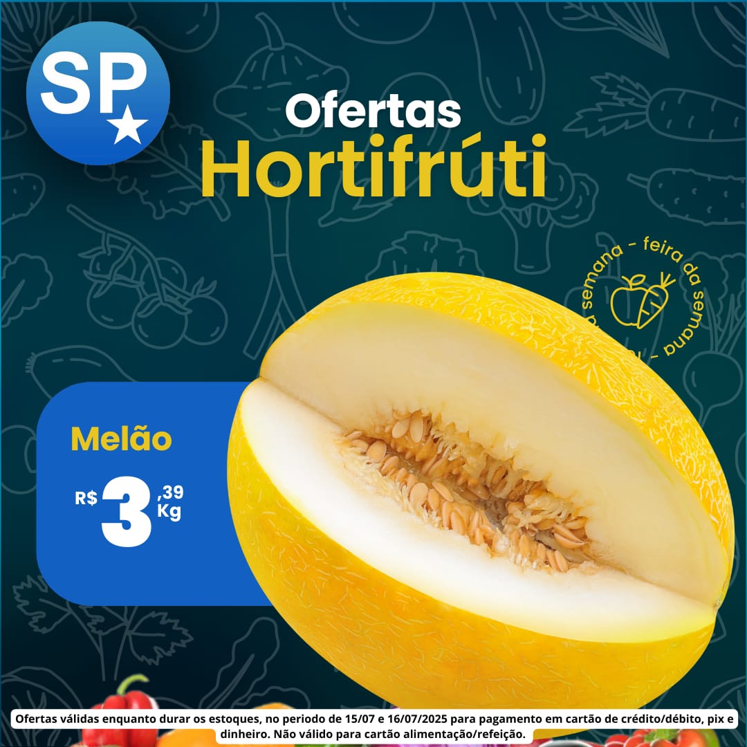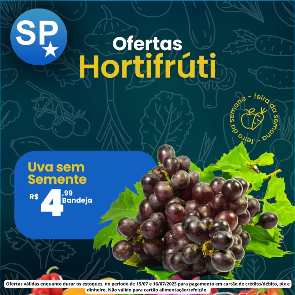 Ofertas válidas para pagamento em pix, dinheiro, cartão de crédito e débito, de 15/07 a 16/07, ou enquanto durarem os estoques.