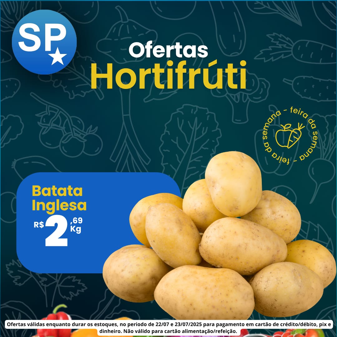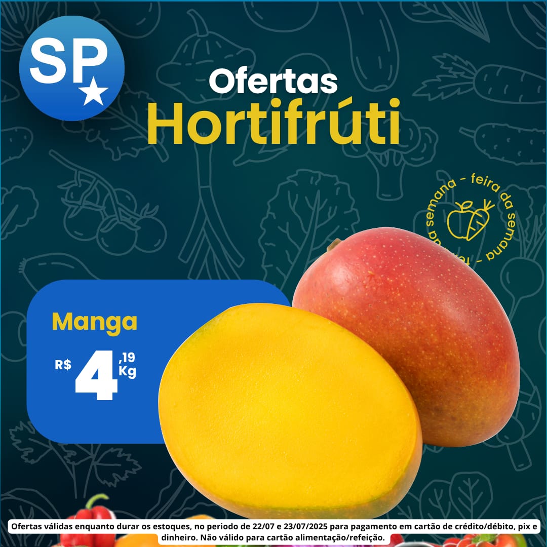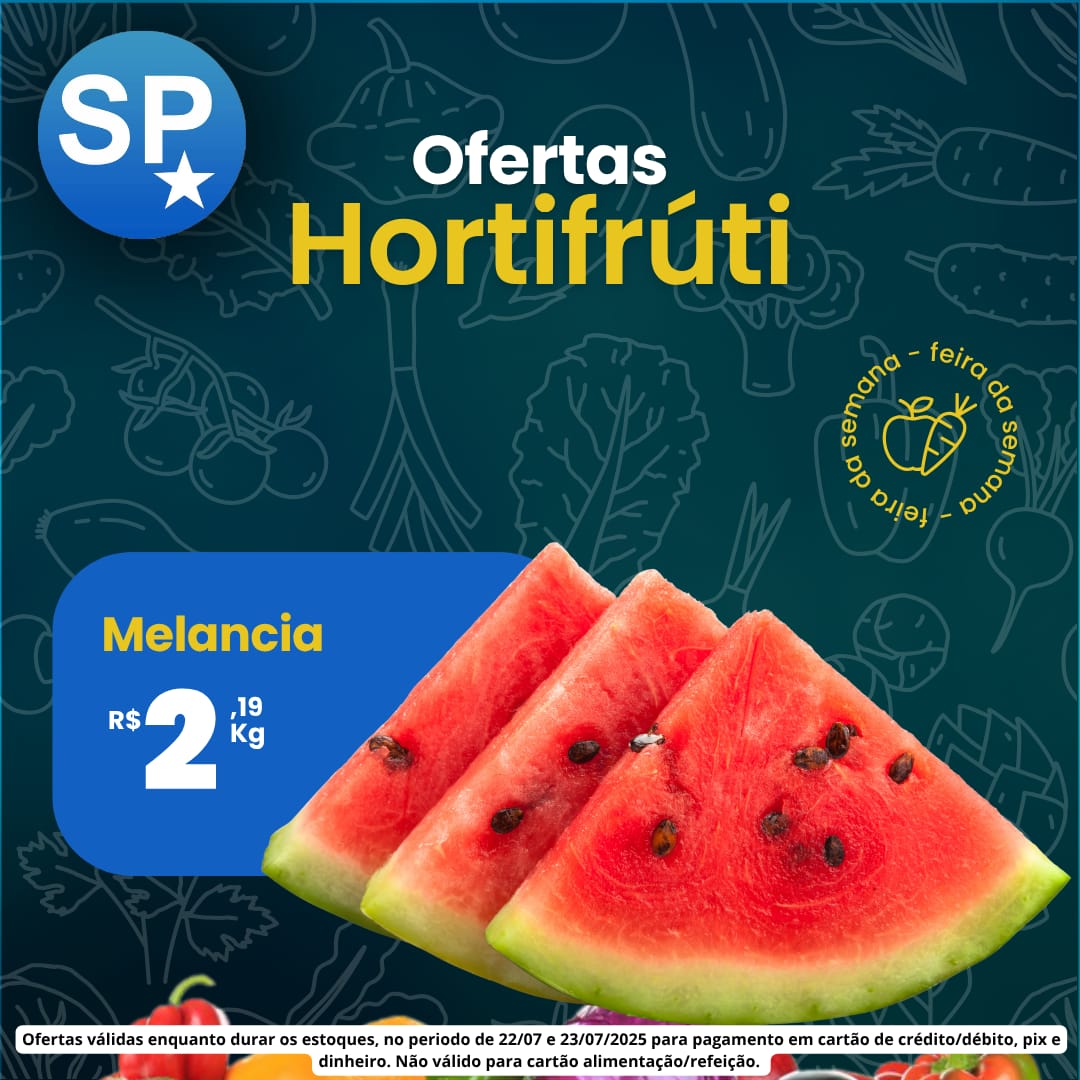 Ofertas válidas para pagamento em pix, dinheiro, cartão de crédito e débito, de 22/07 a 23/07, ou enquanto durarem os estoques.