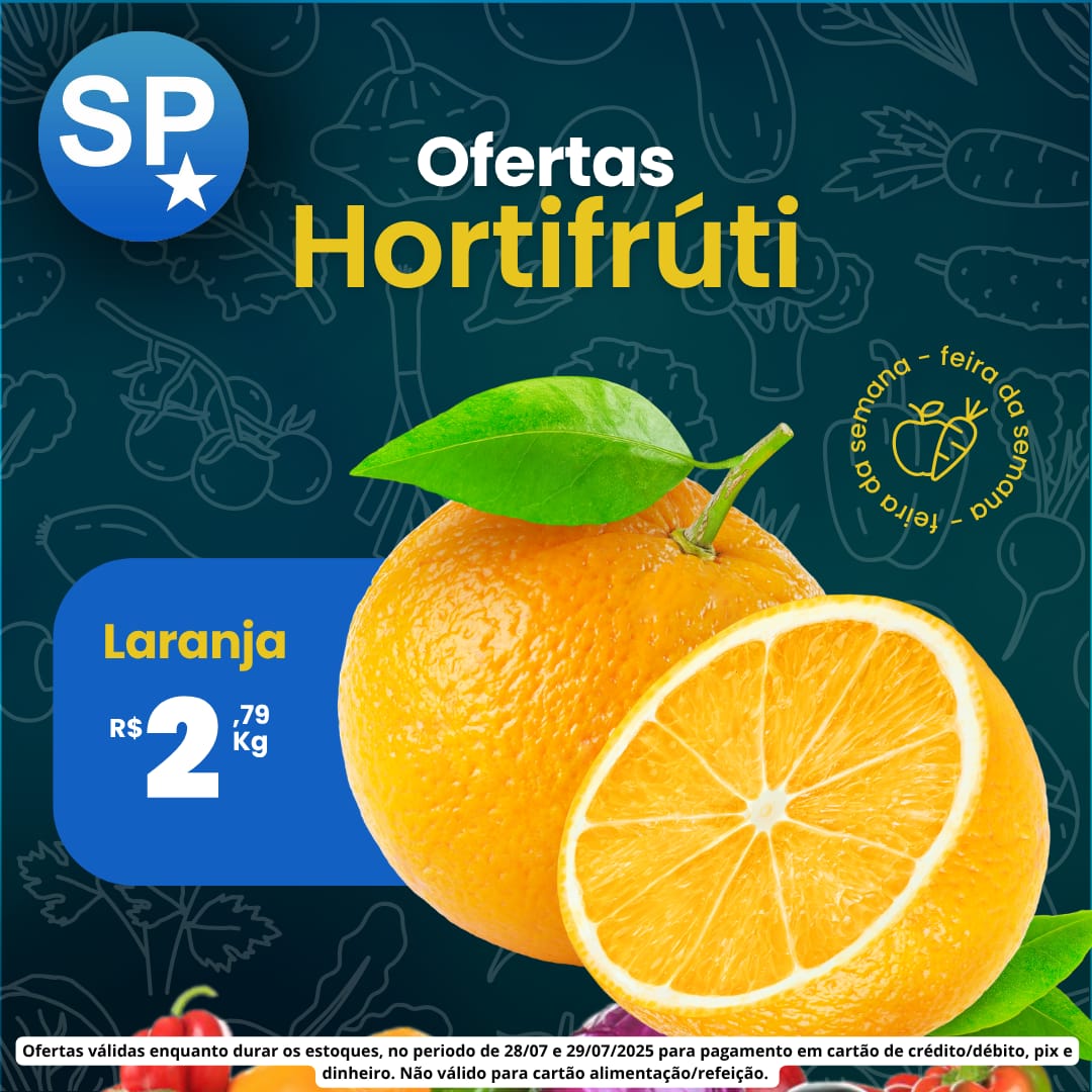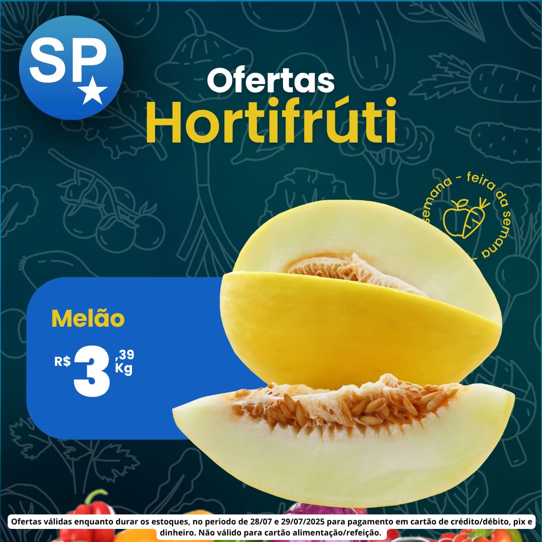 Ofertas válidas para pagamento em pix, dinheiro, cartão de crédito e débito, de 28/07 a 9/07, ou enquanto durarem os estoques.