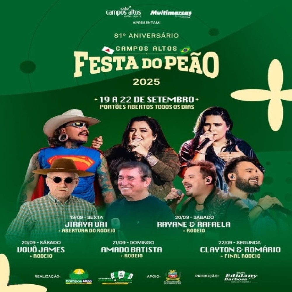 A Festa do Peão de Campos Altos celebra seu 81º aniversário e acontecerá de 19 a 22 de setembro, com portões abertos todos os dias.