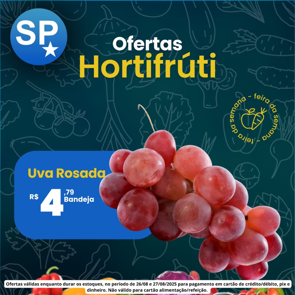 Ofertas válidas para pagamento em pix, dinheiro, cartão de crédito e débito, de 26/08 a 27/08, ou enquanto durarem os estoques.