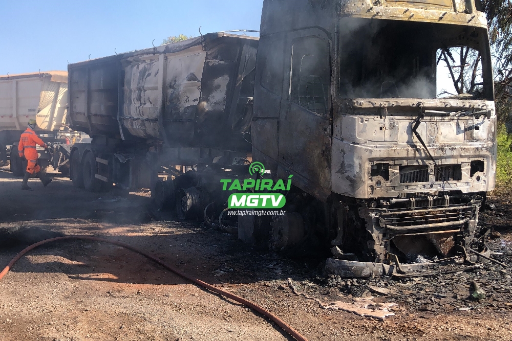 De acordo Corpo de Bombeiros, o fogo iniciou na região da cabine, que rapidamente foi tomada pelas chamas. O incêndio consumiu totalmente o cavalo mecânico e atingiu a primeira carreta do implemento.