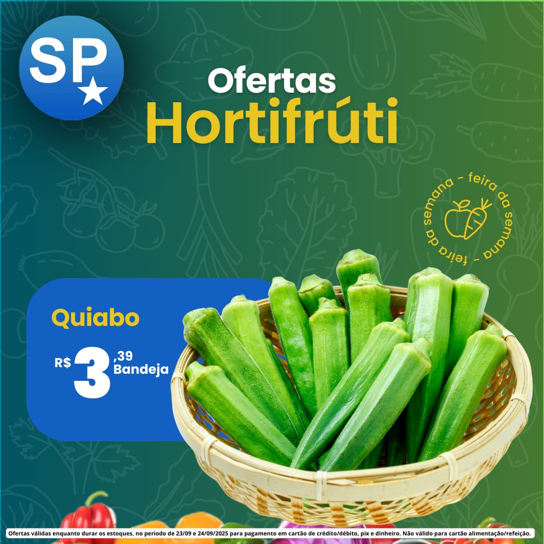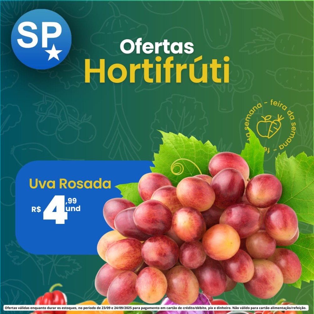 Em Ofertas válidas para pagamento em pix, dinheiro, cartão de crédito e débito, de 23/09 a 24/09, ou enquanto durarem os estoques.