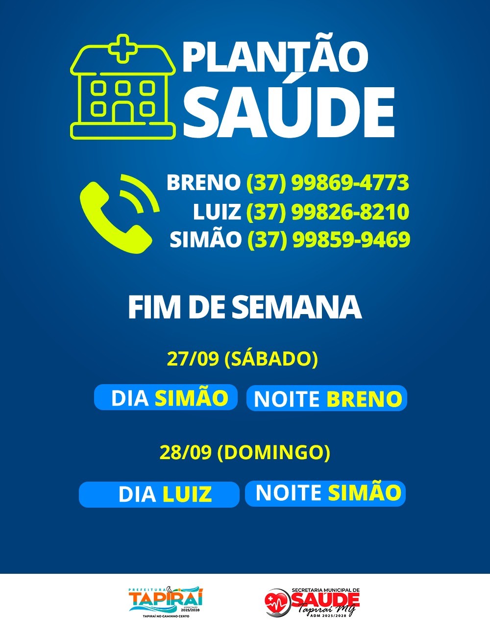 Por Tapiraimg TVPrefeitura divulga plantão de Tapiraí e Altolândia para o fim de semana.