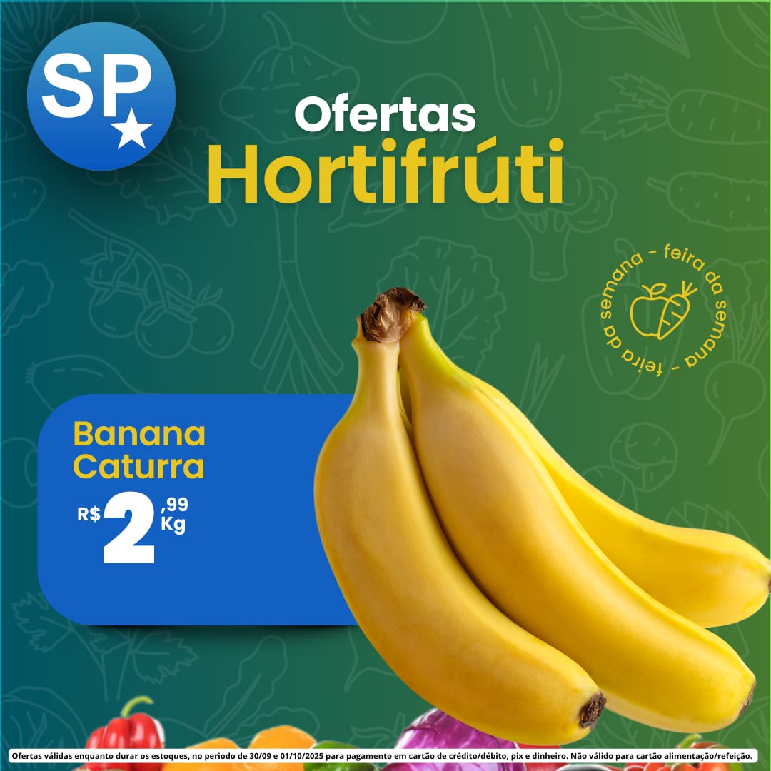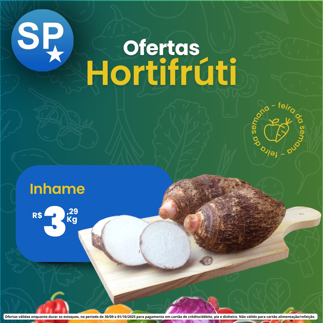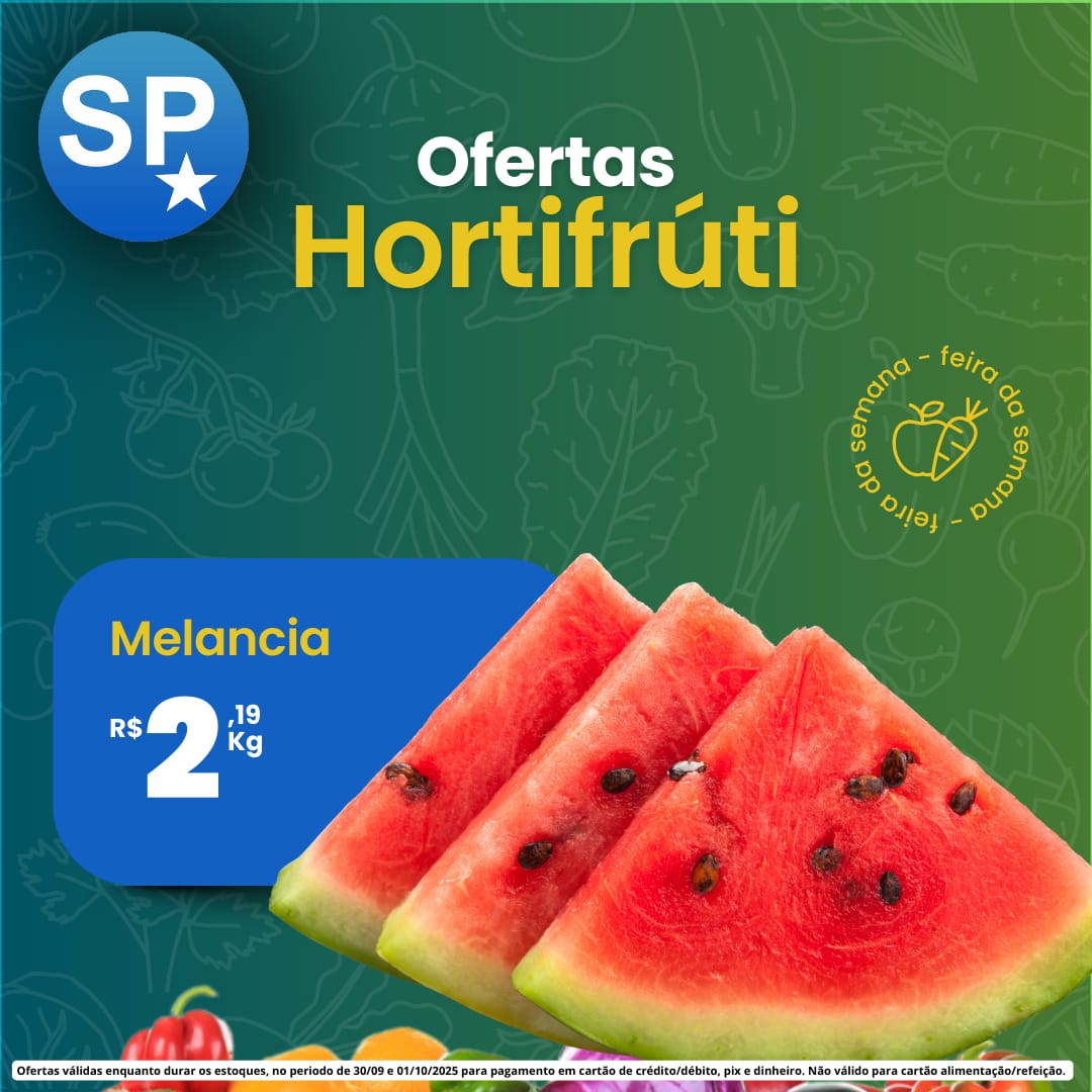 Ofertas válidas para pagamento em pix, dinheiro, cartão de crédito e débito, de 30/09 a 01/10, ou enquanto durarem os estoques.