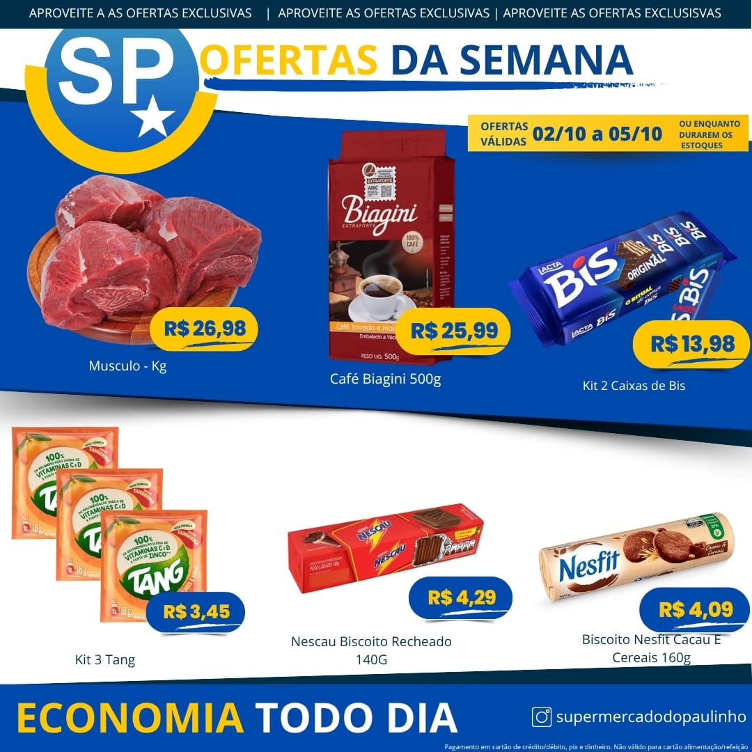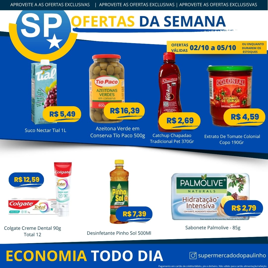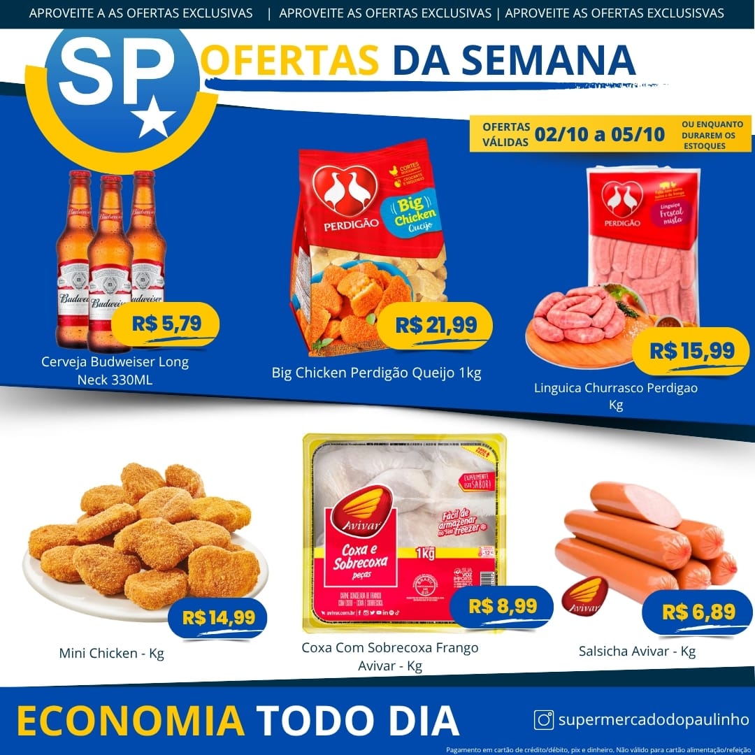 Ofertas válidas para pagamento em pix, dinheiro, cartão de crédito e débito, de 02/10 a 05/10, ou enquanto durarem os estoques.