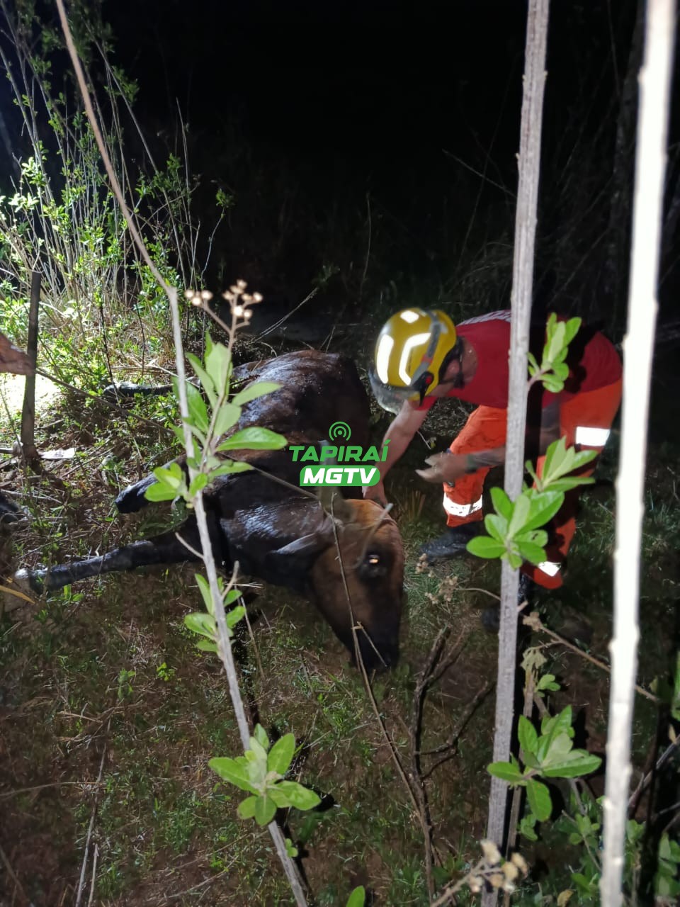 Após o salvamento, a vaca apresentava dificuldades para se mover, e o dono foi aconselhado a buscar um médico veterinário para uma avaliação e os cuidados necessários.