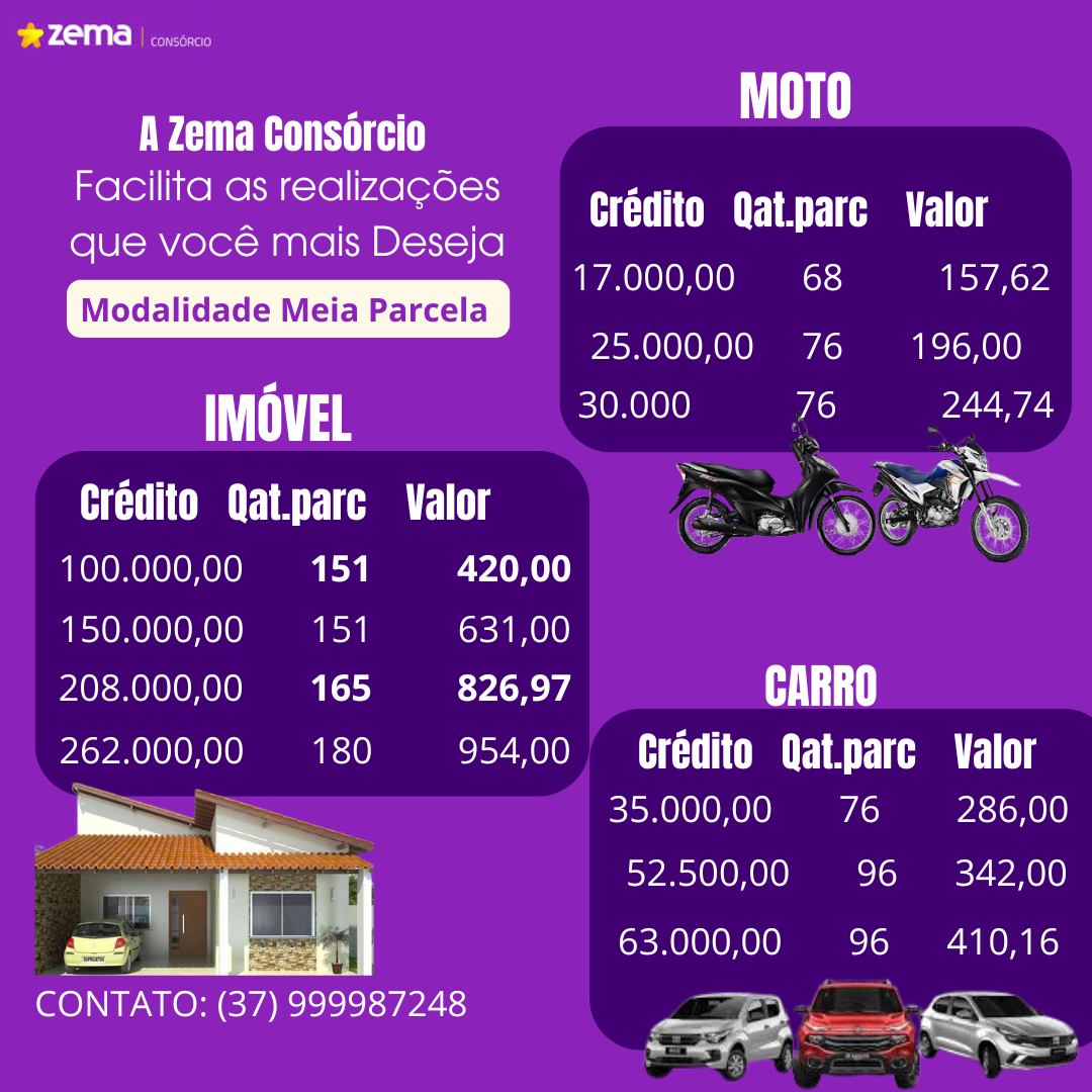 Adquira um imóvel, motocicleta ou carro novo com condições imperdíveis.