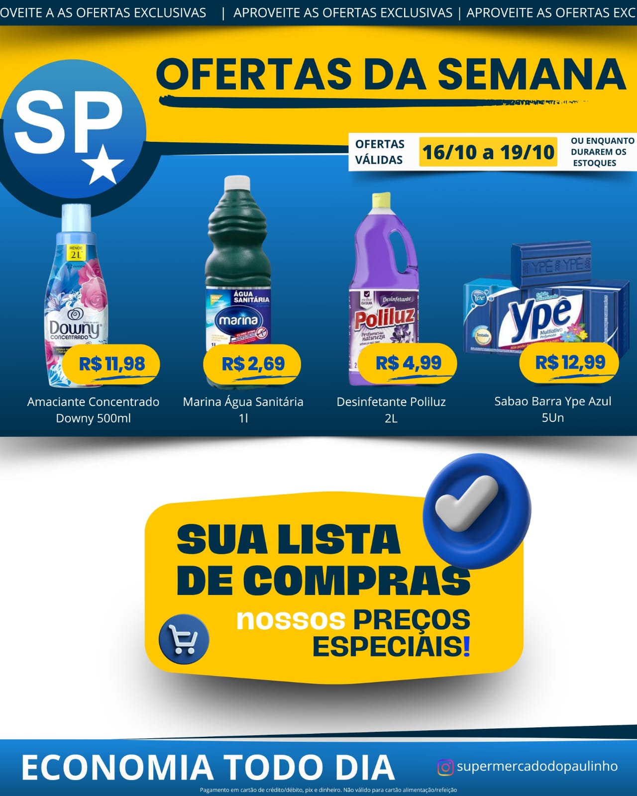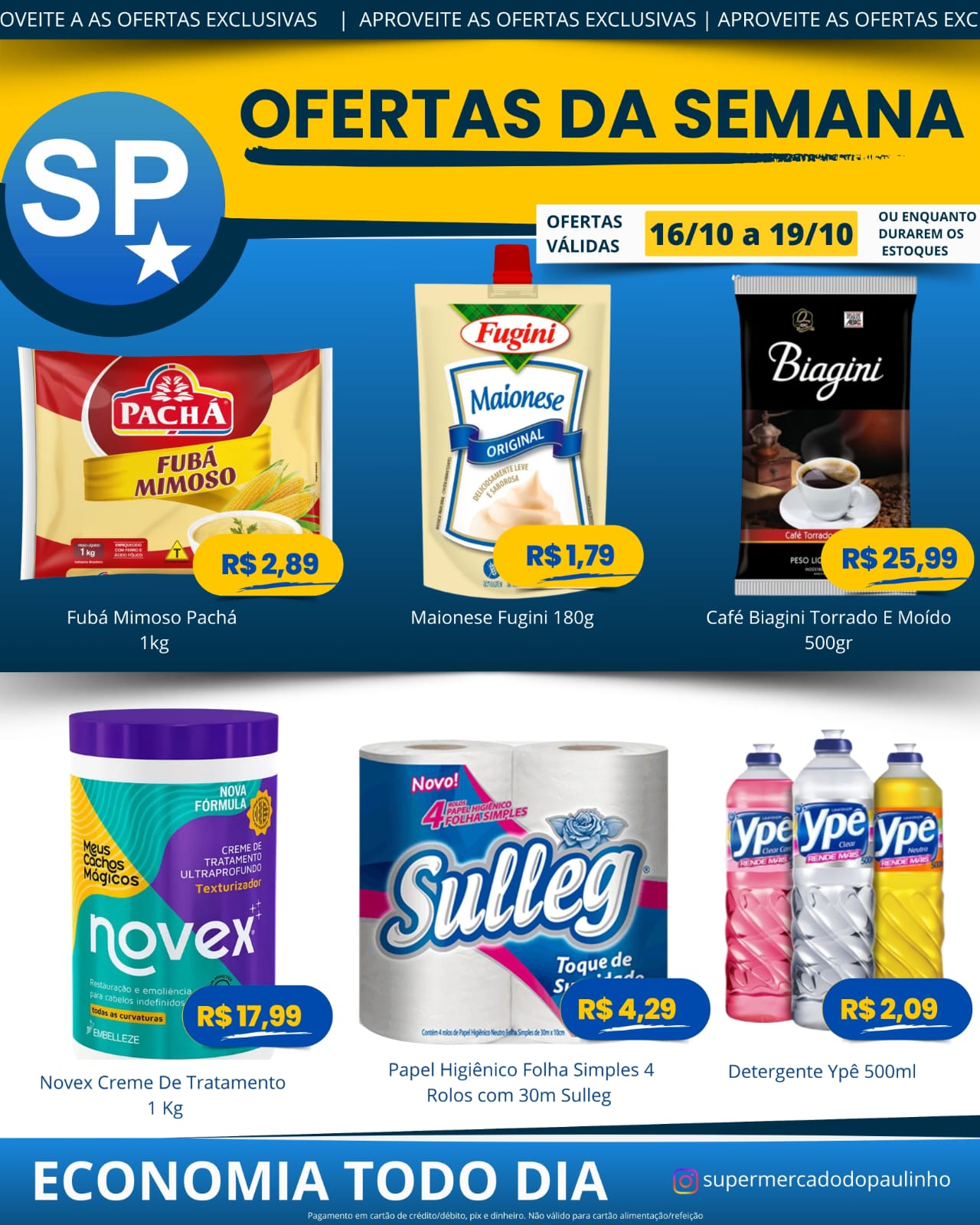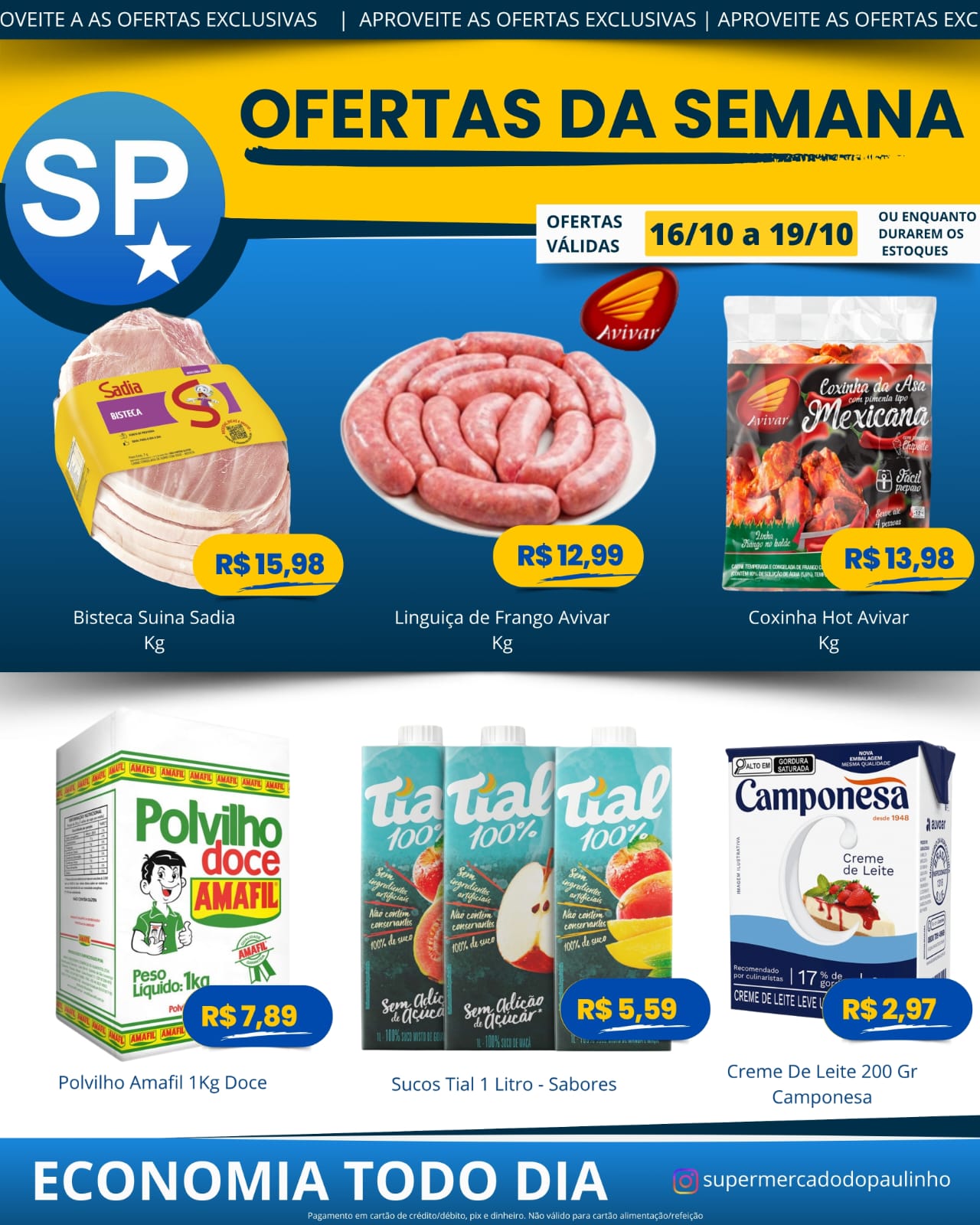 Ofertas válidas para pagamento em pix, dinheiro, cartão de crédito e débito, de 16/10 a 19/10, ou enquanto durarem os estoques.