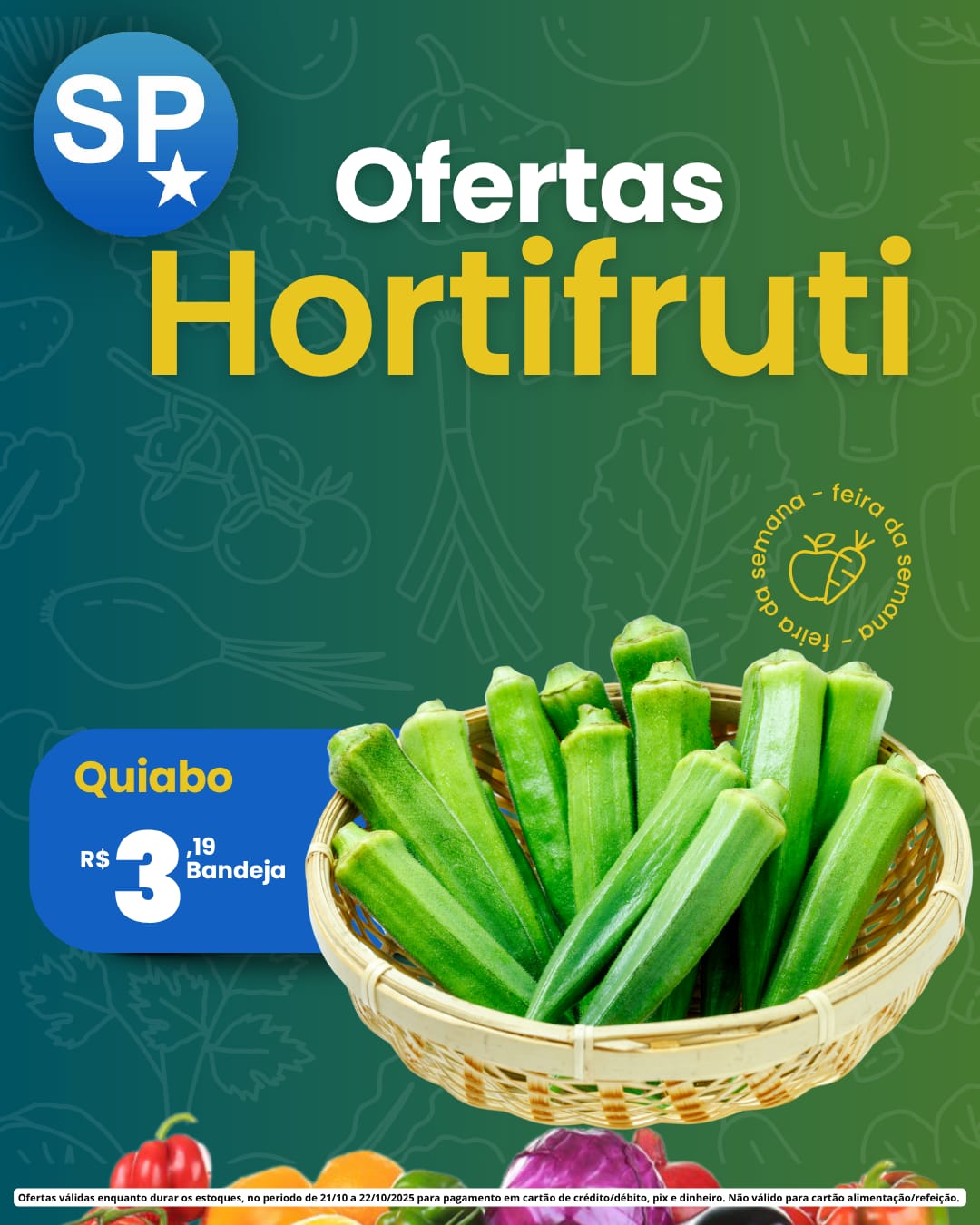 Em Ofertas válidas para pagamento em pix, dinheiro, cartão de crédito e débito, de 21/10 a 22/10, ou enquanto durarem os estoques.