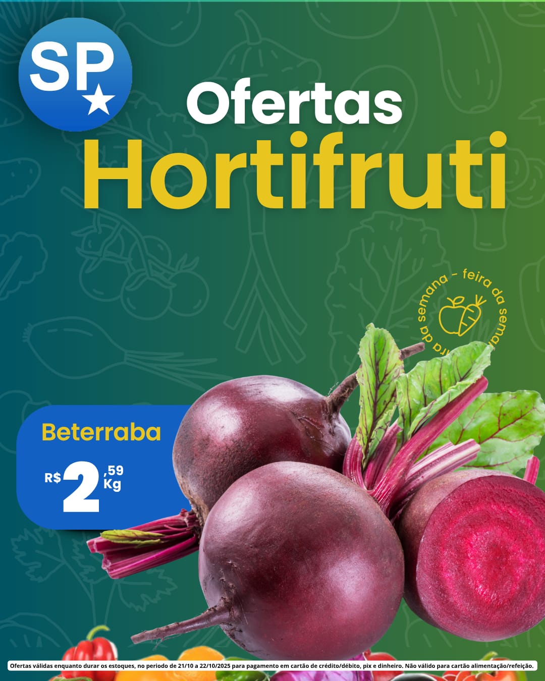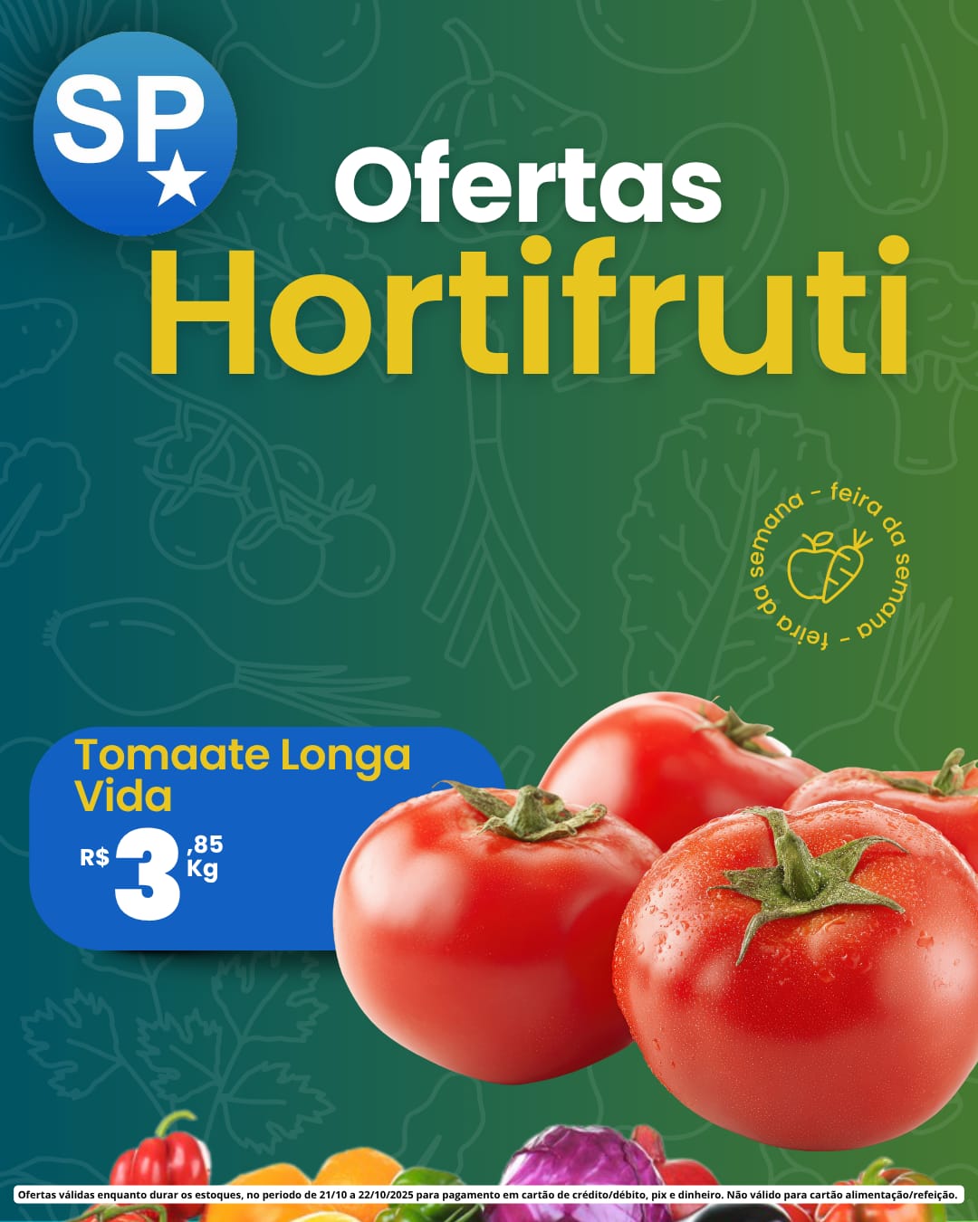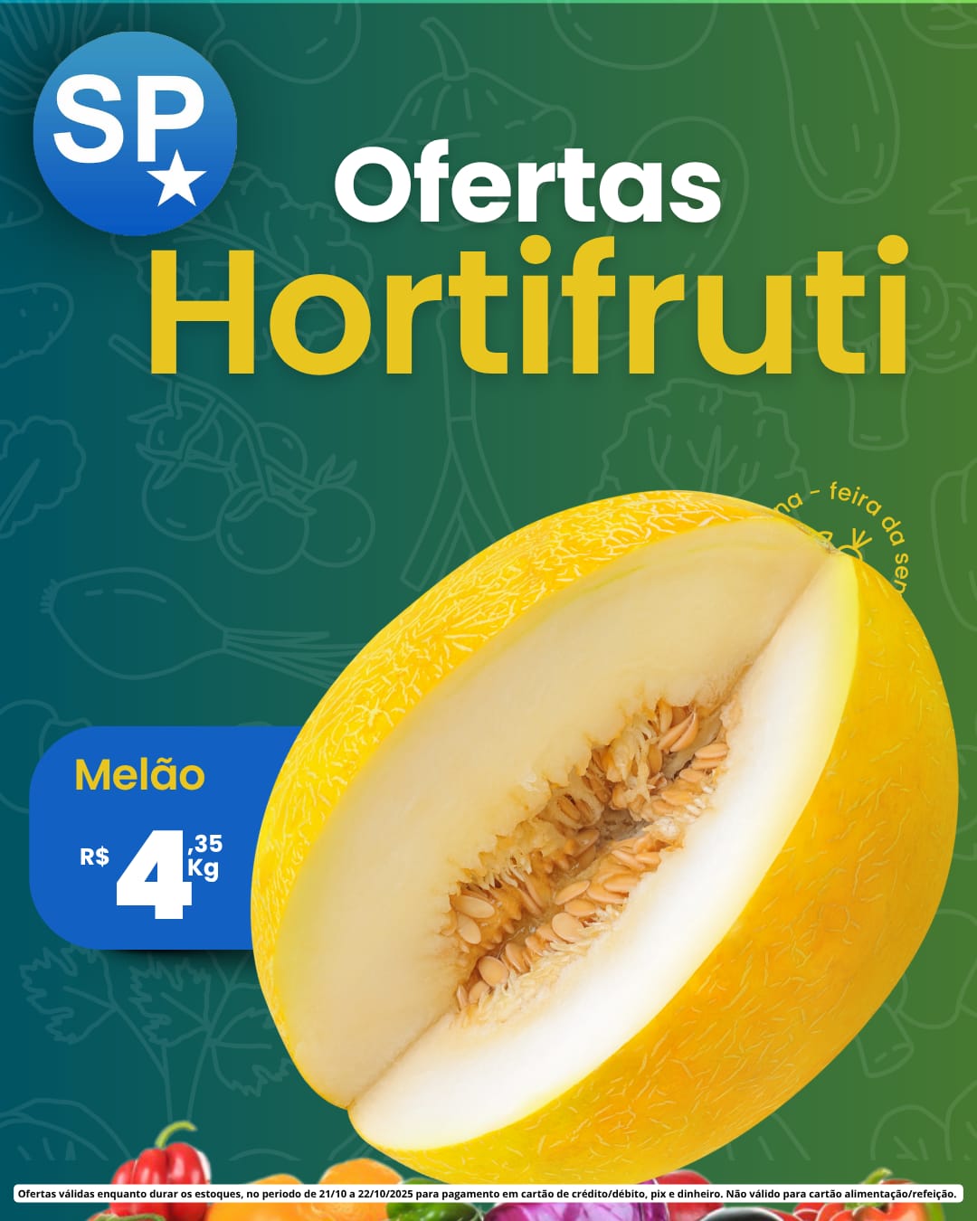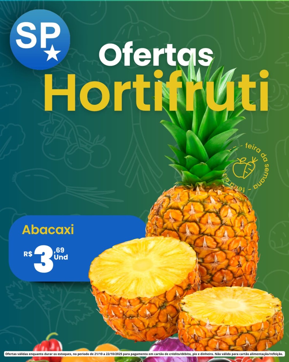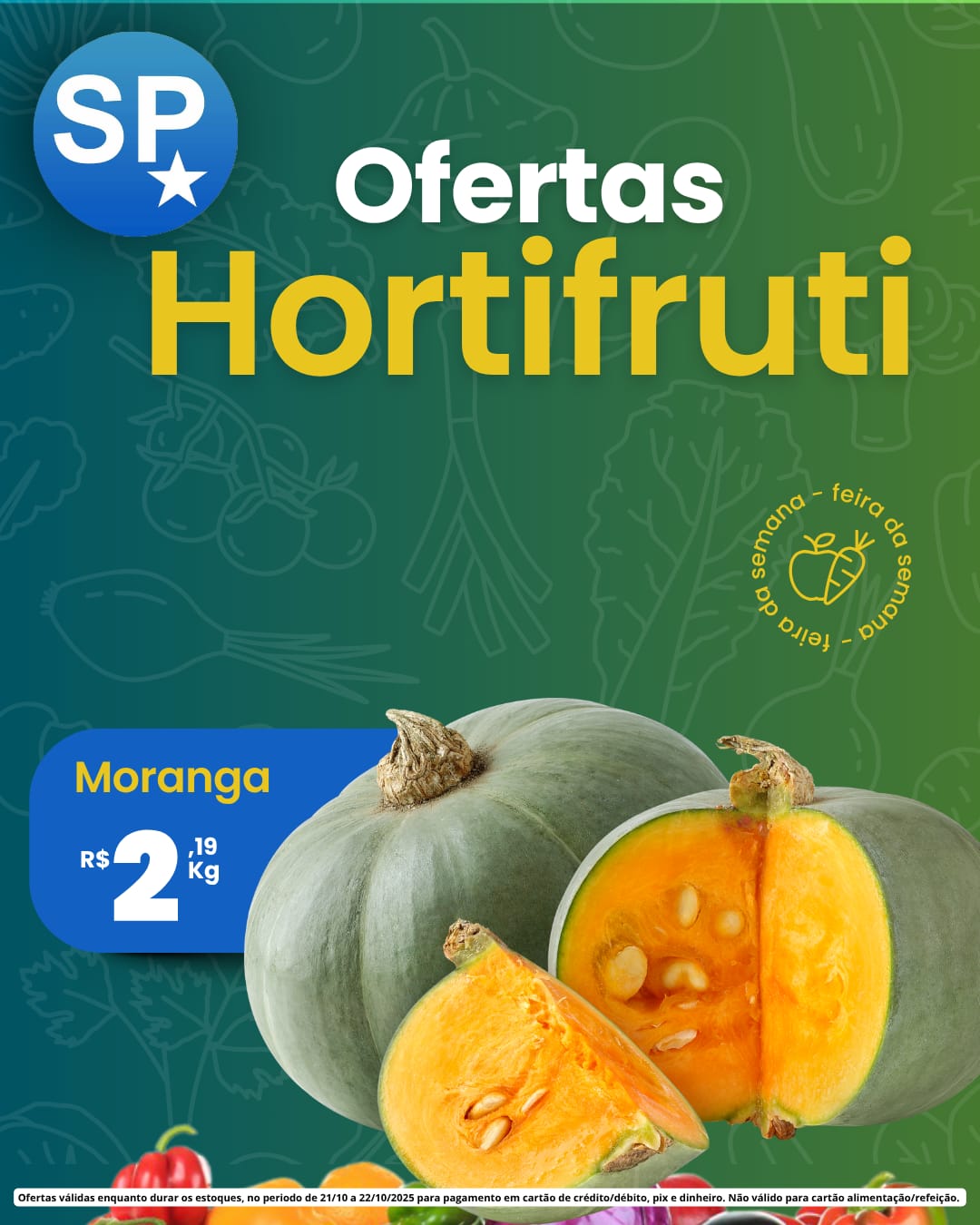Ofertas válidas para pagamento em pix, dinheiro, cartão de crédito e débito, de 21/10 a 22/10, ou enquanto durarem os estoques.