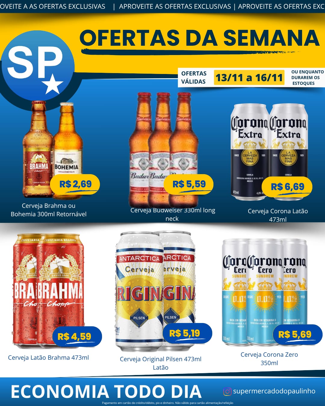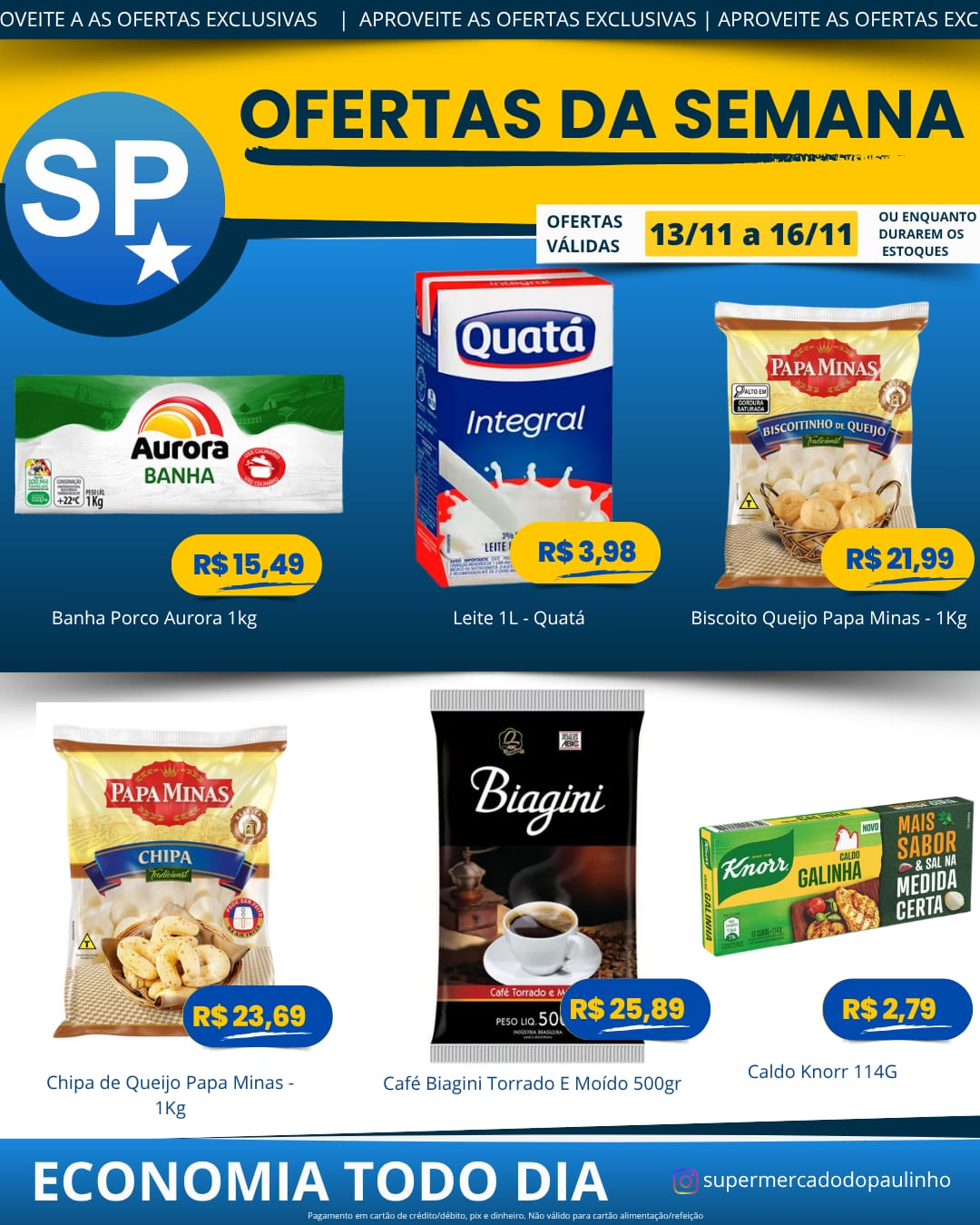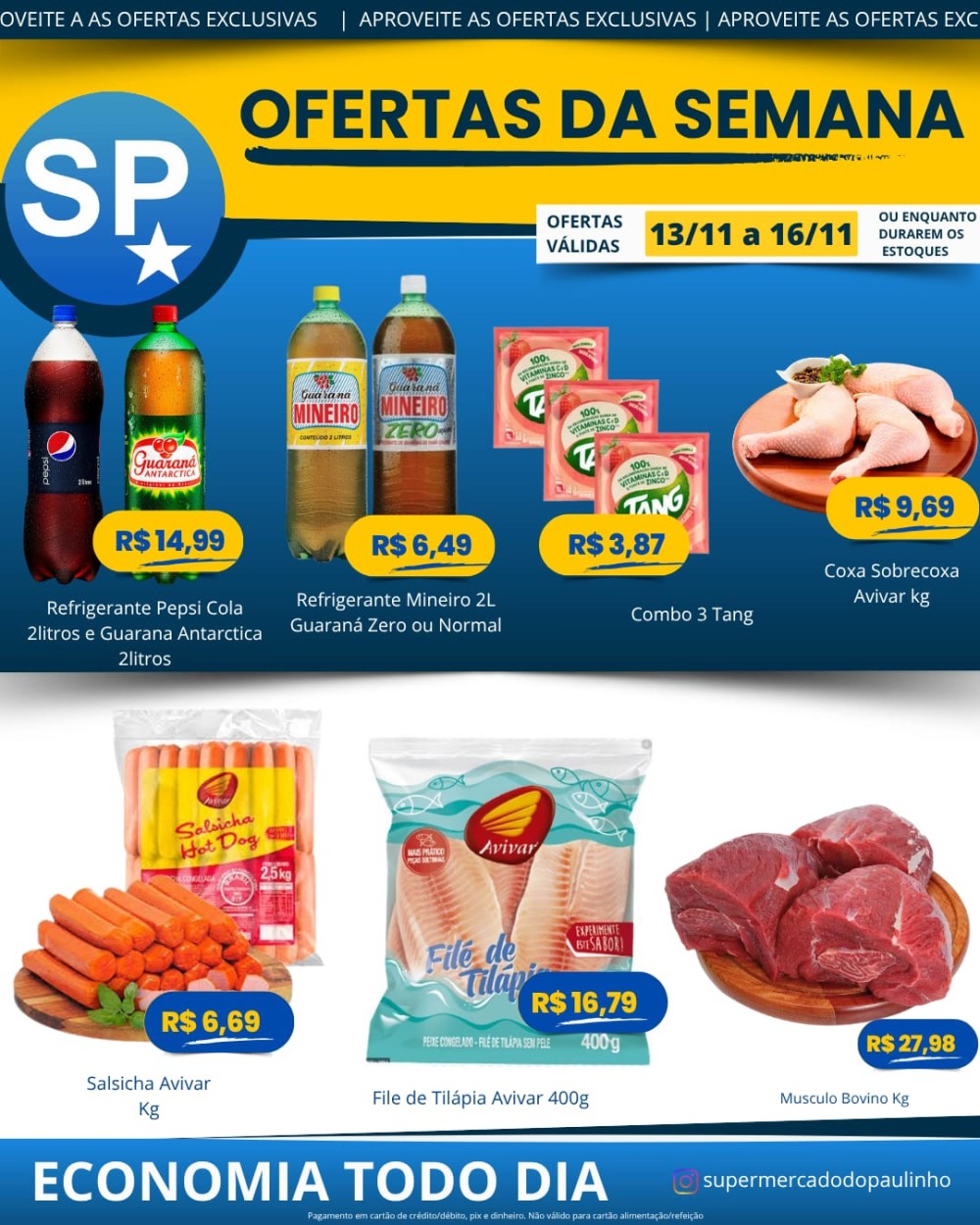 Ofertas válidas para pagamento em pix, dinheiro, cartão de crédito e débito, de 13/11 a 16/11, ou enquanto durarem os estoques.