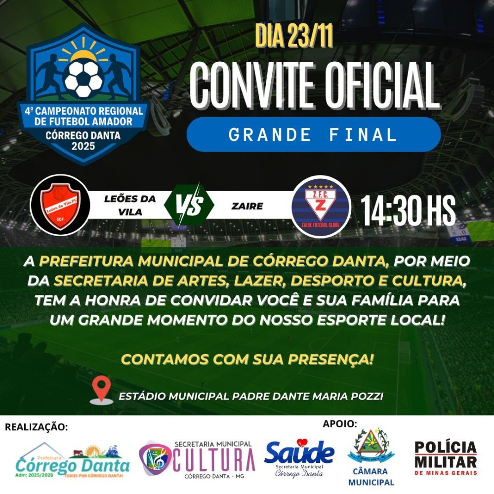 No próximo domingo, dia 23 de novembro de 2025, o Estádio Municipal Padre Dante Maria Pozzi será o cenário da grande final do 4º Campeonato Regional de Futebol Amador.