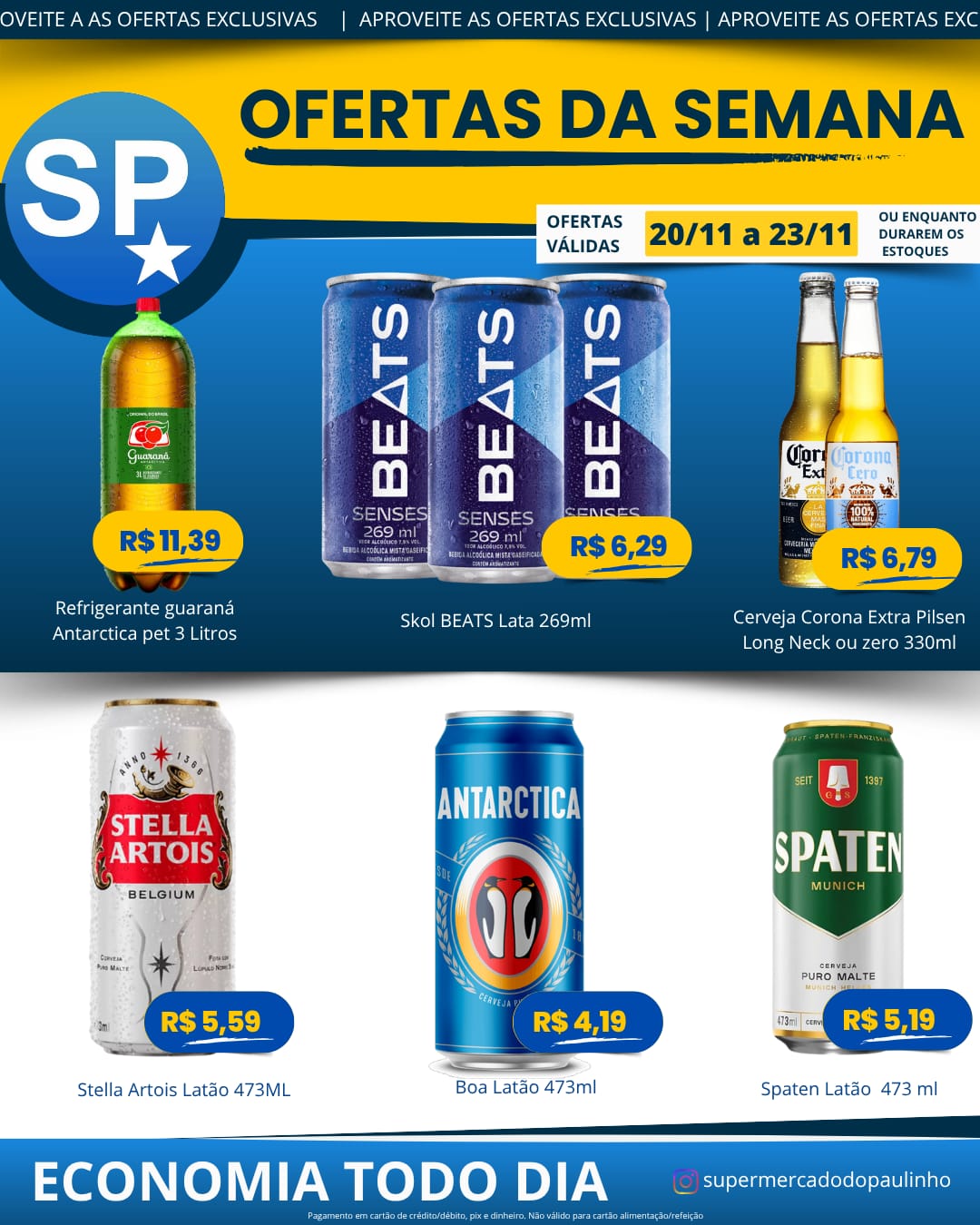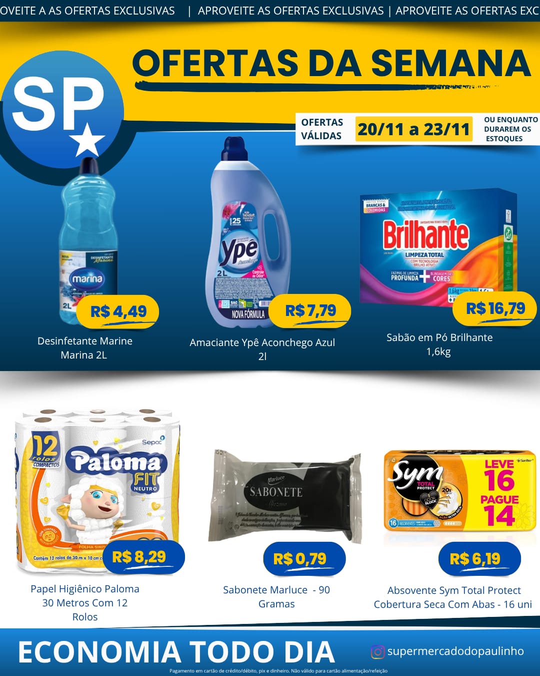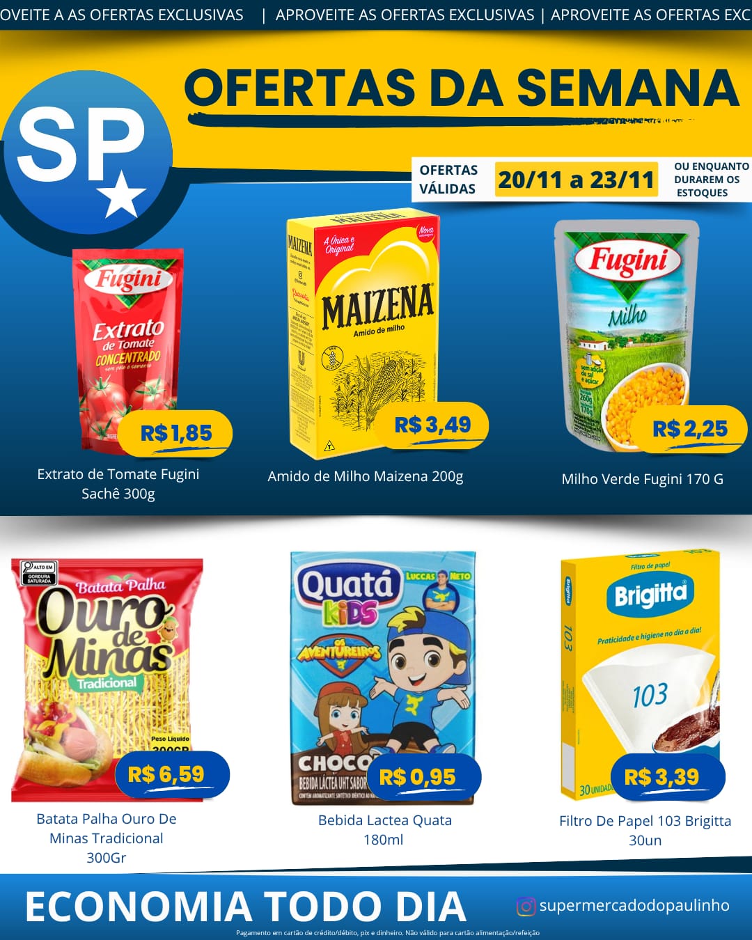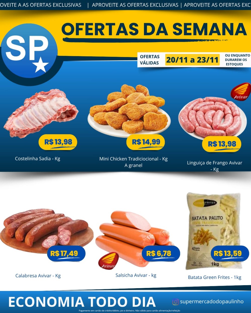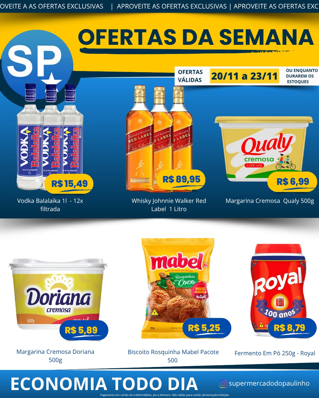Ofertas válidas para pagamento em pix, dinheiro, cartão de crédito e débito, de 20/11 a 23/11, ou enquanto durarem os estoques.