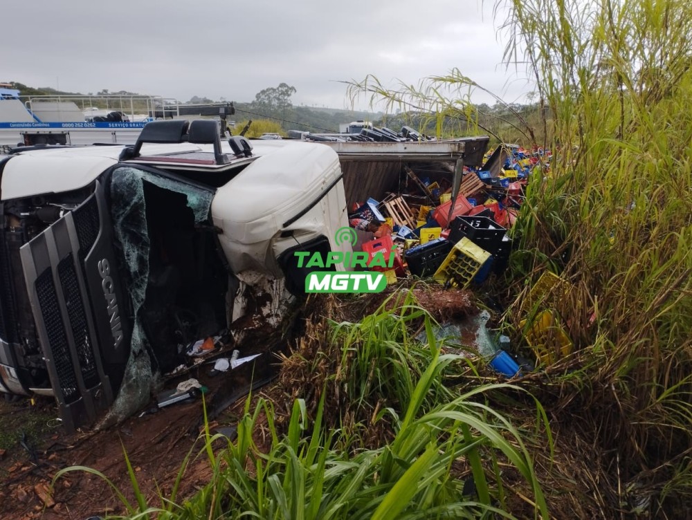 De acordo com informações apuradas pelo Tapiraímg TV, a carreta seguia no sentido Luz/Campos Altos, quando saiu da pista e tombou, parando às margens da rodovia.