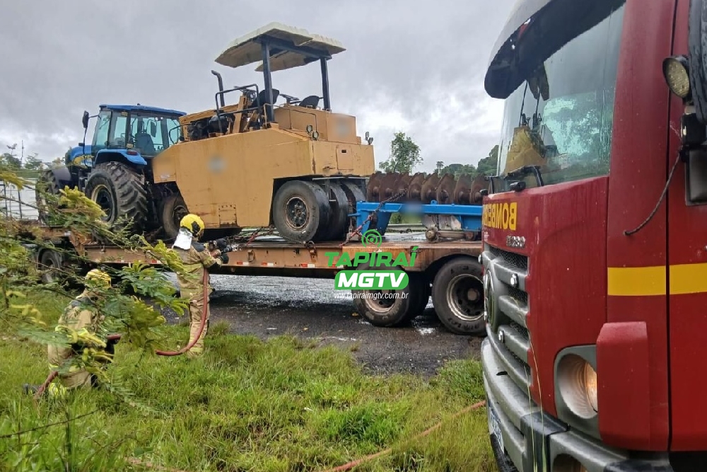 Ao avistar a viatura, o motorista parou no acostamento e os militares realizaram o combate às chamas, que estavam concentradas no eixo traseiro da carreta, que transportava uma máquina agrícola. O fogo ficou restrito ao eixo e não atingiu o restante do veículo nem a carga.