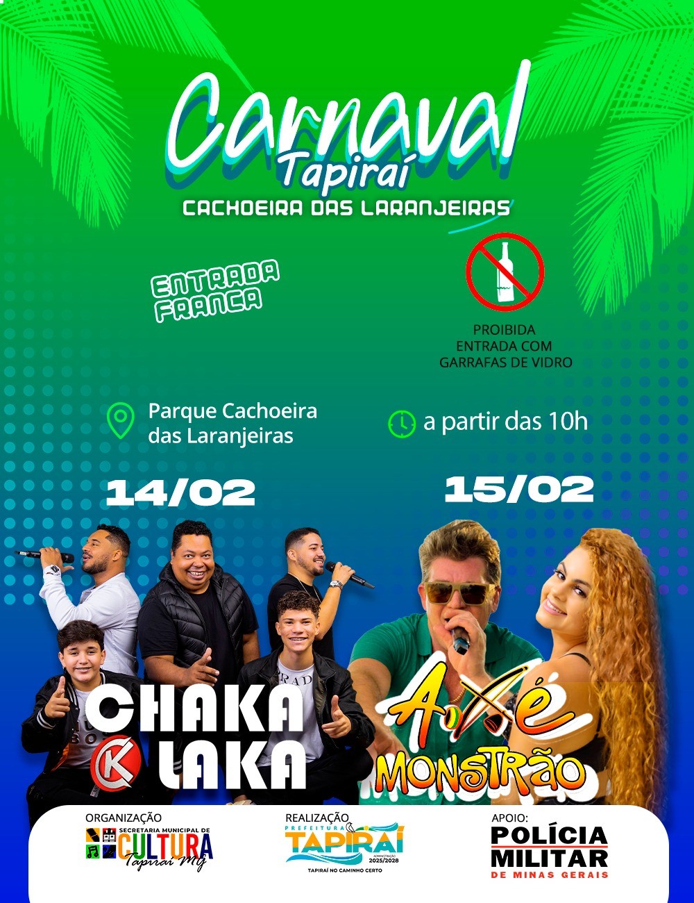 A Prefeitura de Tapiraí divulgou as atividades que acontecerão no Parque Cachoeira das Laranjeiras durante o Carnaval 2026.