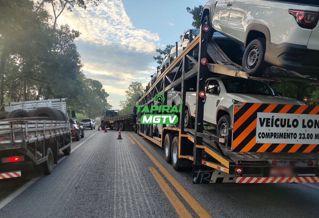 De acordo com a Polícia Militar Rodoviária (PMRv), uma carreta cegonha, que seguia no sentido Itaúna/Divinópolis, não conseguiu frear a tempo ao se aproximar do trecho em obras, que estava em sistema "pare e siga".