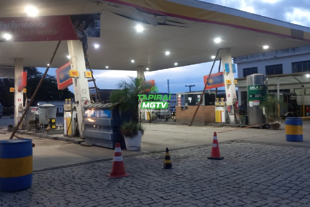De acordo com o Corpo de Bombeiros, testemunhas informaram que um caminhão caçamba entrou na área de abastecimento com a carroceria basculada (levantada), atingindo pilares de sustentação da cobertura do posto.