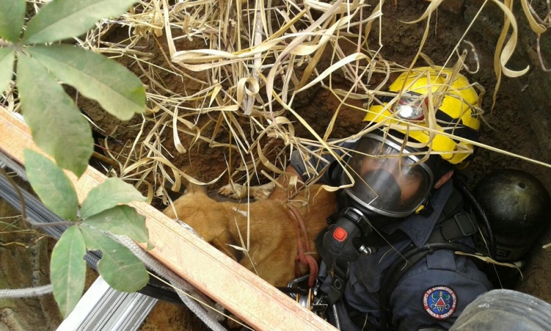 Segundo os militares, o animal passou 12 dias no local, que tem cerca de 20 metros de profundidade. O dono contou que o cão é da raça Pastor Alemão e desapareceu depois de sair com outros dois cachorros menores.