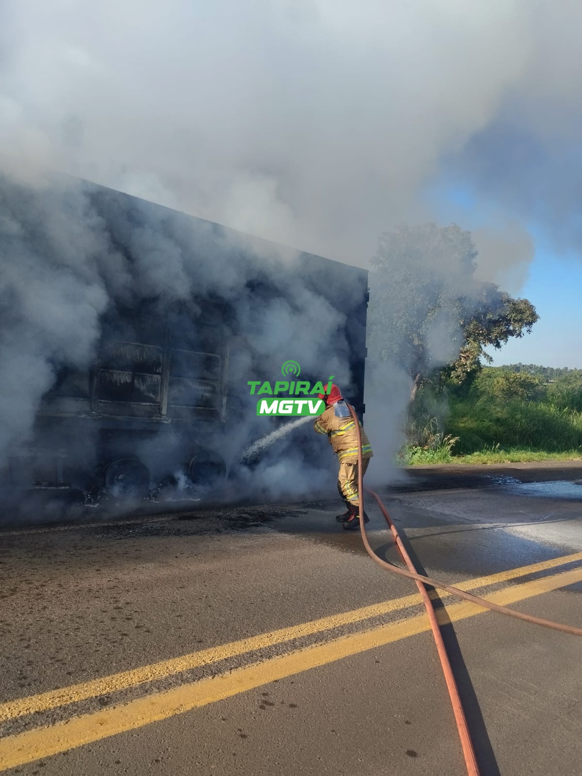 O Corpo de Bombeiros de Uberaba foi acionado na manhã desta segunda-feira (20/04), por volta das 07h25, para combater um incêndio em uma carreta no km 767 da BR-262.