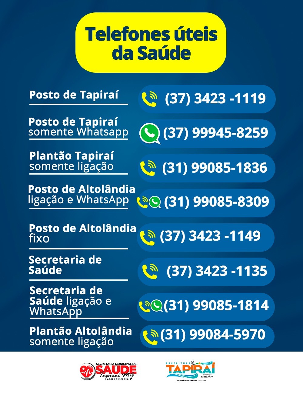A Prefeitura de Tapiraí divulga os números dos telefones úteis da área de saúde em Tapiraí.