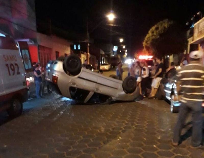 Por volta das 19h deste sábado (23), uma mulher trafegava em um Fiat Pálio, pela Rua Padre Abel, sentido bairro/centro, quando na altura do número 799, ela perdeu o controle da direção, bateu em um veículo Fiat Uno que estava estacionado próximo à Vidrolar e capotou no meio da rua.