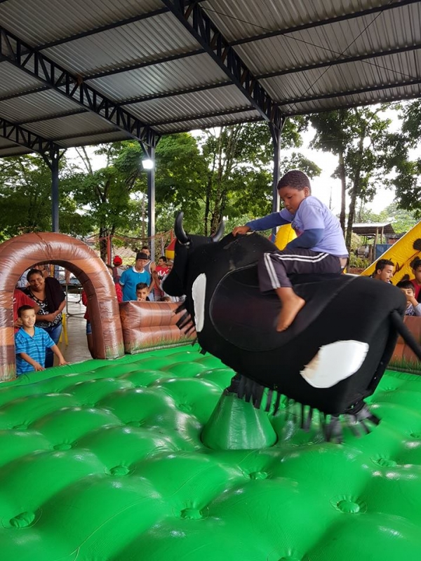 Além de presentear as crianças com brinquedos, o dia foi repleto de brincadeiras em cama elástica, touro mecânico, escorregador e piscina de bolinhas. O grupo ainda distribuiu lanches, picolé e algodão doce para as crianças.
