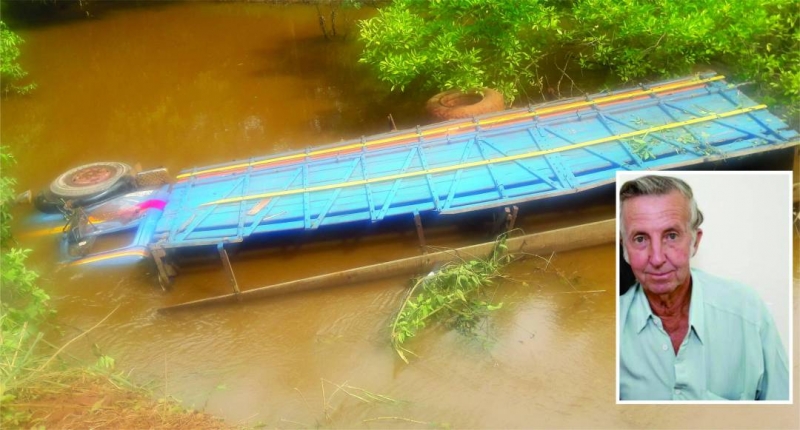 O motorista de caminhão boiadeiro - carregado com 14 cabeças de gado - morreu na tarde de ontem, quando perdeu o controle do veículo, que caiu da ponte no córrego Areia Branca, situada em estrada vicinal da zona rural de Sacramento, local que dá acesso à região do Cipó. O condutor Célio Devós Ribeiro, 70 anos, morreu no local.