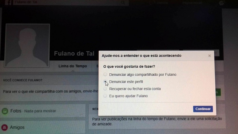 Ao denunciar a página pessoal, por meio de ferramentas disponibilizadas pela própria rede social, a empresa teria ignorado a existência do perfil falso, afirmando que analisou a acusação e verificou que a situação "não violava os padrões da comunidade".