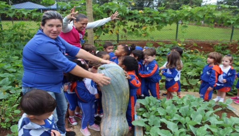 Uma abóbora pesando 50 quilos e com um metro de altura foi colhida nesta segunda-feira (26) por alunos de uma escola de educação infantil em Águas Claras, no DF. O cultivo da horta orgânica faz parte das atividades das crianças a partir do jardim II. A ideia, dizem os professores, é criar uma relação saudável com a alimentação e o meio ambiente.