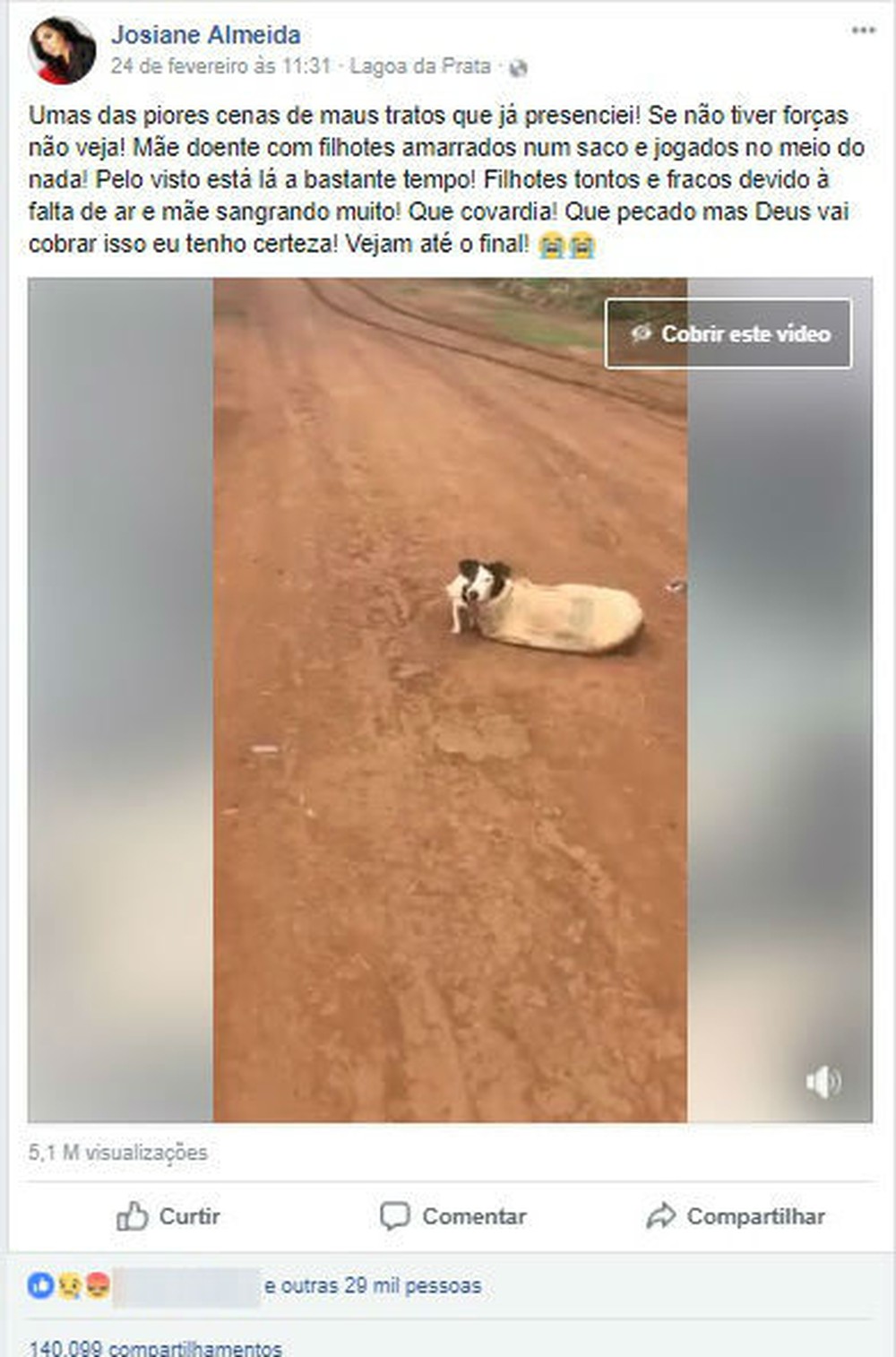 O vídeo do resgate teve mais de 5 milhões de visualizações e mais de 140 compartilhamentos. O socorro ocorreu no sábado (24/02). Josiane, que trabalha há oito anos como protetora de animais, recebeu uma ligação de uma amiga informando sobre a cadela.
