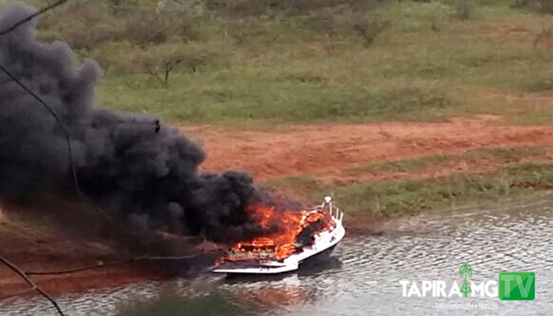 Uma lancha pegou fogo no Lago de Furnas, em Guapé (MG), nesta terça-feira (13). O fogo começou por volta das 12h, segundo a Polícia Militar. A embarcação foi completamente destruída pelas chamas e depois afundou.