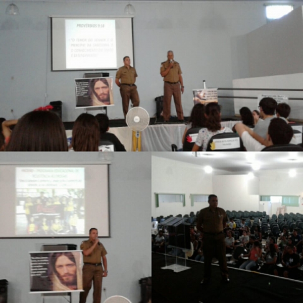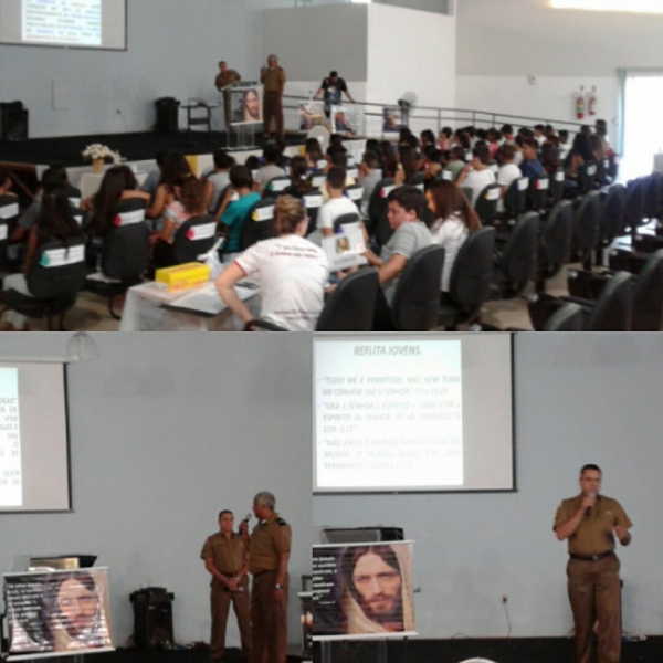 Neste sábado (17), às 17h30min, a Polícia Militar através do Ten Rogério - Cmt do 3 Pel e o Sgt Alexandre, atinente ao "Primeiro Encontro de Adolescentes com Cristo de Bambuí", realizaram palestra no IFMG - Campus Bambuí, com o tema "Uso indiscriminado de drogas pelos jovens". Estavam presentes no evento aproximadamente 80 pessoas entre Jovens e Adultos