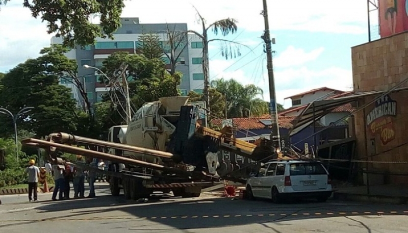 Na tarde desta segunda-feira, 19 de março, um equipamento utilizado para perfuração de fundação da construção de um edifício no centro de Lagoa da Prata tombou e atingiu a rede de energia da Cemig.