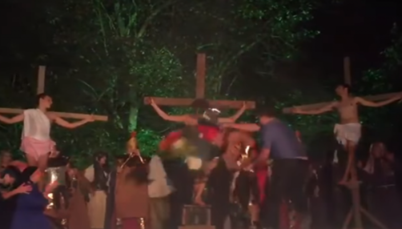 Em vídeo que viralizou nas redes sociais, um homem invade o palco da apresentação para "salvar Jesus" da crucificação. Logo após subir onde os atores encenavam, ele agride um homem vestido de soldado romano com um capacete. O personagem agredido enfiava uma lança em Jesus na cena interrompida.