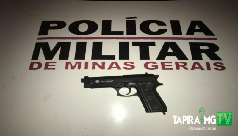 Após rastreamento, a guarnição abordou o condutor da Toyota Hilux e durante buscas no automóvel, os policiais localizaram e apreenderam um simulacro de pistola.