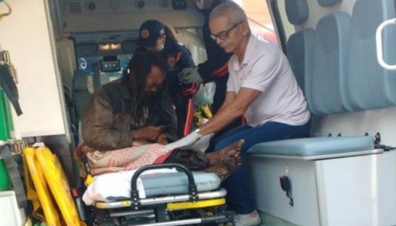 Ao chegar no local a equipe relatou que teve dificuldades para atender o homem que estava agressivo. Foi necessário acionar a Polícia Militar (PM) para prosseguir com o atendimento. “Mesmo com a PM ele ainda demonstrava agressividade. Outra pessoa que passou pelo local e disse conhecer a vítima nos auxiliou”, disse o condutor socorrista, Anderson Silva.