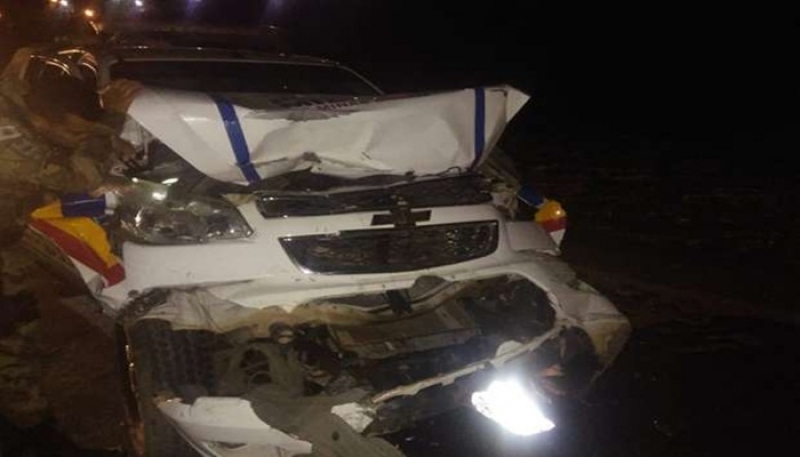 Na mesma rodovia, na altura do bairro Roma, em Neves, o criminoso bateu em um Ford Fiesta. O militar que conduzia a viatura não conseguiu parar e colidiu na lateral do veículo roubado.