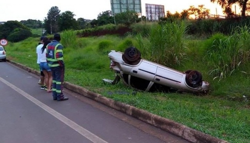 Segundo informações, o condutor de um Classic, perdeu o controle direcional do veículo, bateu na guia de proteção e tombou.