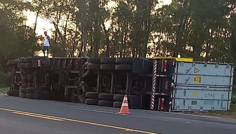 Uma carreta carregada com frangos congelados tombou na tarde deste domingo (13) na MG-050, entre Passos e Itaú de Minas (MG). O acidente aconteceu por volta das 14h no quilômetro 365.